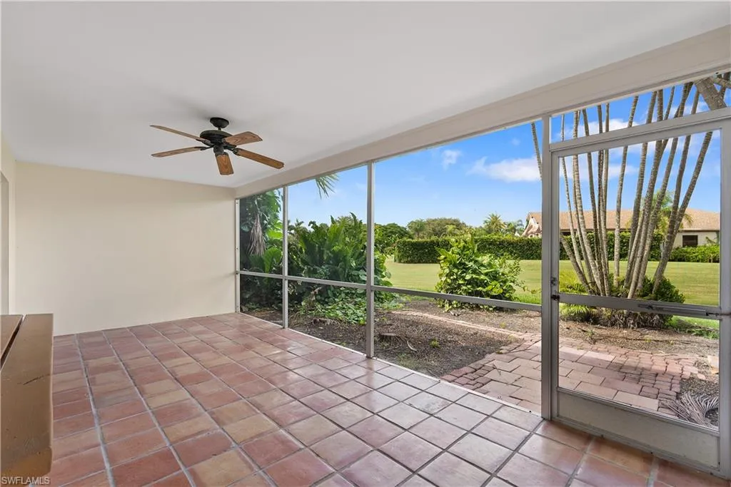 Discover this freshly painted 2-bedroom, 2-bathroom attached villa with a 1-car garage, ideally located in the quiet, low-traffic area of Boca Ciega Circle within the established Lakewood community. This charming home boasts a desirable Southwest exposure, offering views of the golf course and mature trees—creating a serene setting that perfectly blends comfort, convenience, and outdoor enjoyment. Designed for relaxed living, the comfortable floor plan features a spacious and airy living room, ideal for gatherings and unwinding. The centrally located kitchen is highlighted by a picturesque window with convenient pass-through to the lanai. The primary suite offers an en-suite bath and ample closet space, while the guest bedroom and second bath provide versatility—perfect for visitors, family, or a home office, both suites outfitted with new carpeting. Step outside to the screened lanai, an inviting space where you can enjoy year-round outdoor living while soaking in the tranquil golf course views. The attached garage provides secure parking, extra storage, and a laundry area for added convenience. This home presents an exciting opportunity for the new owner to enjoy as is or reimagine into your custom retreat. With low HOA fees, this property offers an exceptional value in a prime location just minutes from downtown Naples, Sugden Park and the Bayshore Arts District. Don’t miss this incredible opportunity—schedule your showing today!