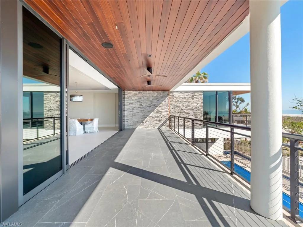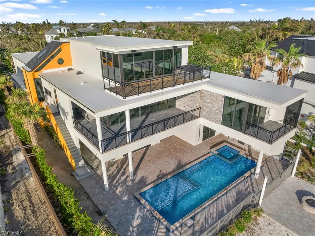 This extraordinary beachfront estate on Sanibel Island is one of the finest ever offered on the Islands. Situated on World Renowned West Gulf Drive with Incredible Sunset Views, this private, gated retreat exemplifies direct beachfront luxury at its finest. Designed by the renowned AJO Joyce Owens Architecture and set for completion in Spring 2025, this modern island residence sets a new benchmark for Island coastal living. Offering 6,073 square feet of air-conditioned living space and a total of 15,671 square feet dedicated to exceptional living. Every detail has been thoughtfully curated from ultra-high-end custom cabinetry, Top Zero sinks in kitchen, Genaire Pro gas oven, exotic countertops, to premium Fleetwood & Euro wall windows and doors that blur the lines between indoor and outdoor living while showcasing breathtaking Gulf Front Sand Beach Sunset Views. The home also features a private elevator to all floors, Hugh Primary Bedroom with uncompromised Beach Front views with outdoor Hot tube, a dedicated home gym, a climate-controlled wine room, and a full-house 1000 Gallon 60 KW generator, elevating both convenience and peace of mind. Elegant Snow Fly 48X48 Porcelain high-end flooring runs throughout the home, while a state-of-the-art Control4 system provides whole-house automation for lighting, audio, video, security, and climate control, African Pearl Crystal Bar, Mahogany staircase to all floors, built in closets, DXV toilets. Outdoor living is just as exceptional, with a sprawling lanai, resort-style pool, outdoor kitchen, and lushly landscaped grounds creating a private coastal oasis designed for both entertaining and peaceful retreat. With its impeccable craftsmanship, attention to detail, and world-class amenities, this estate rivals the finest homes in all Southeast and Southwest Florida, bringing that elevated level of luxury to Sanibel Island.