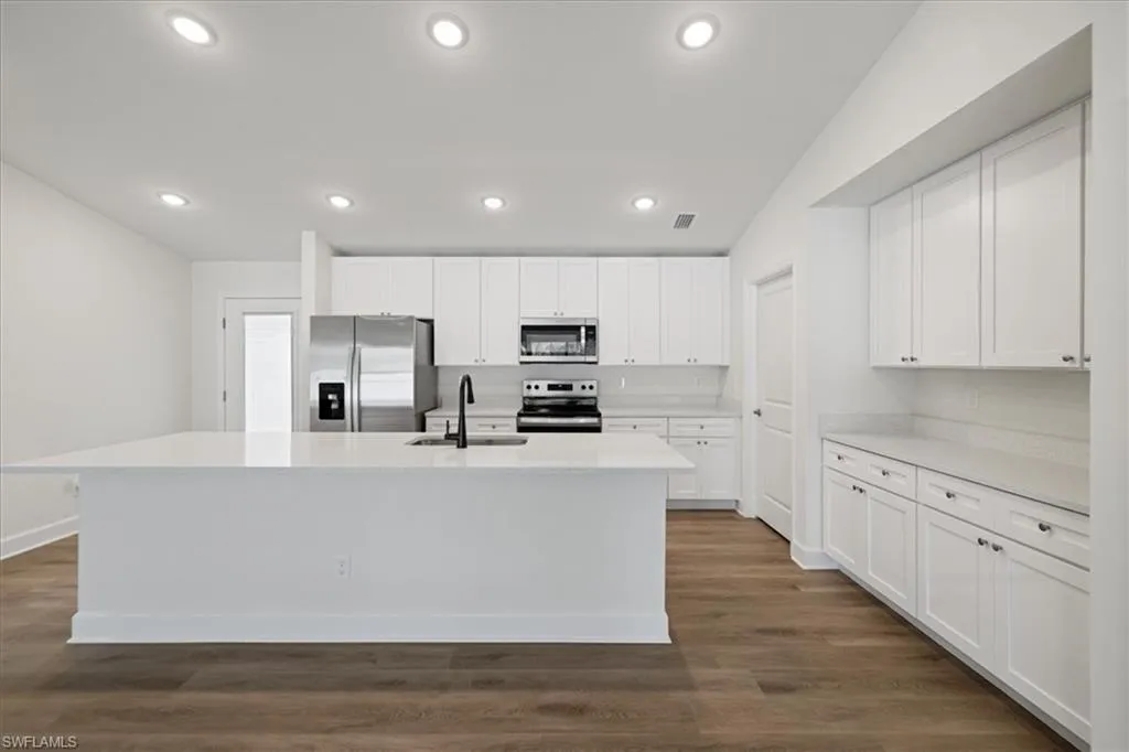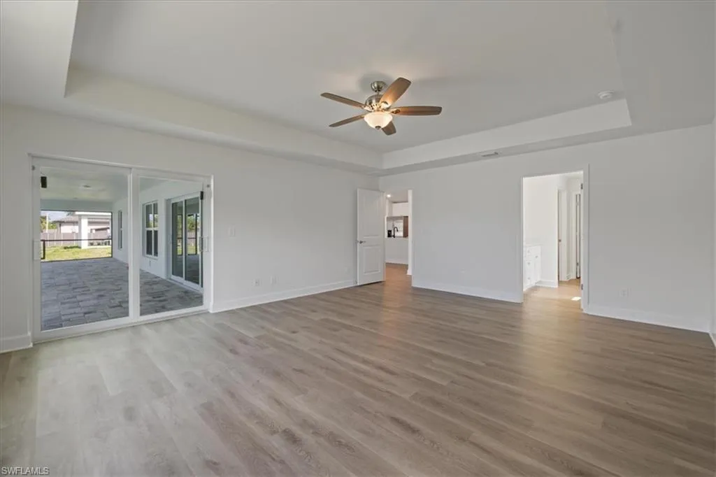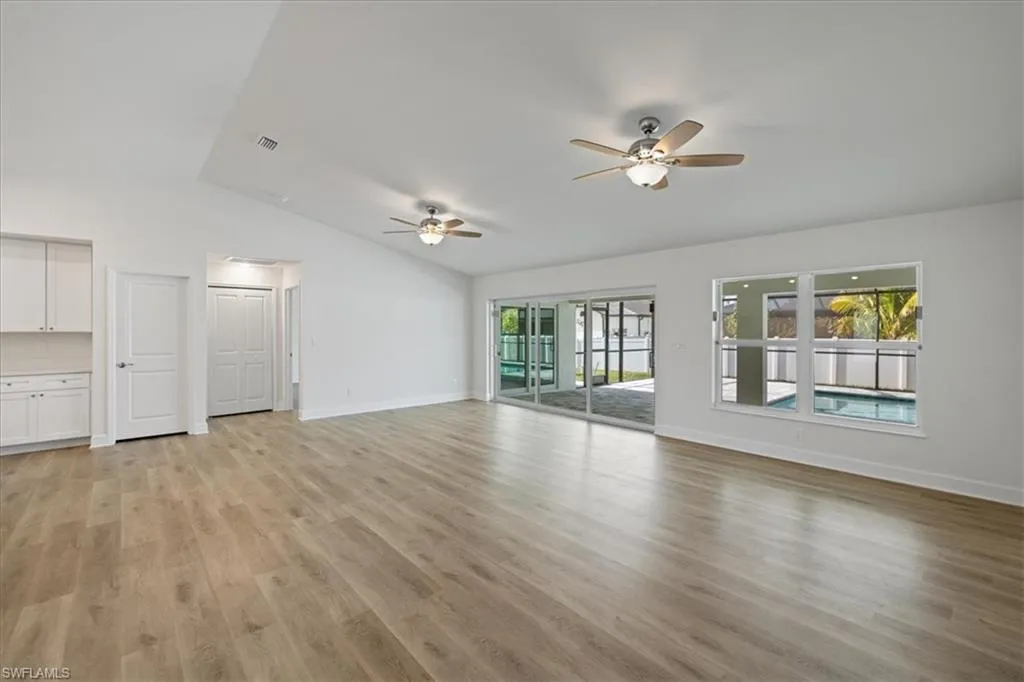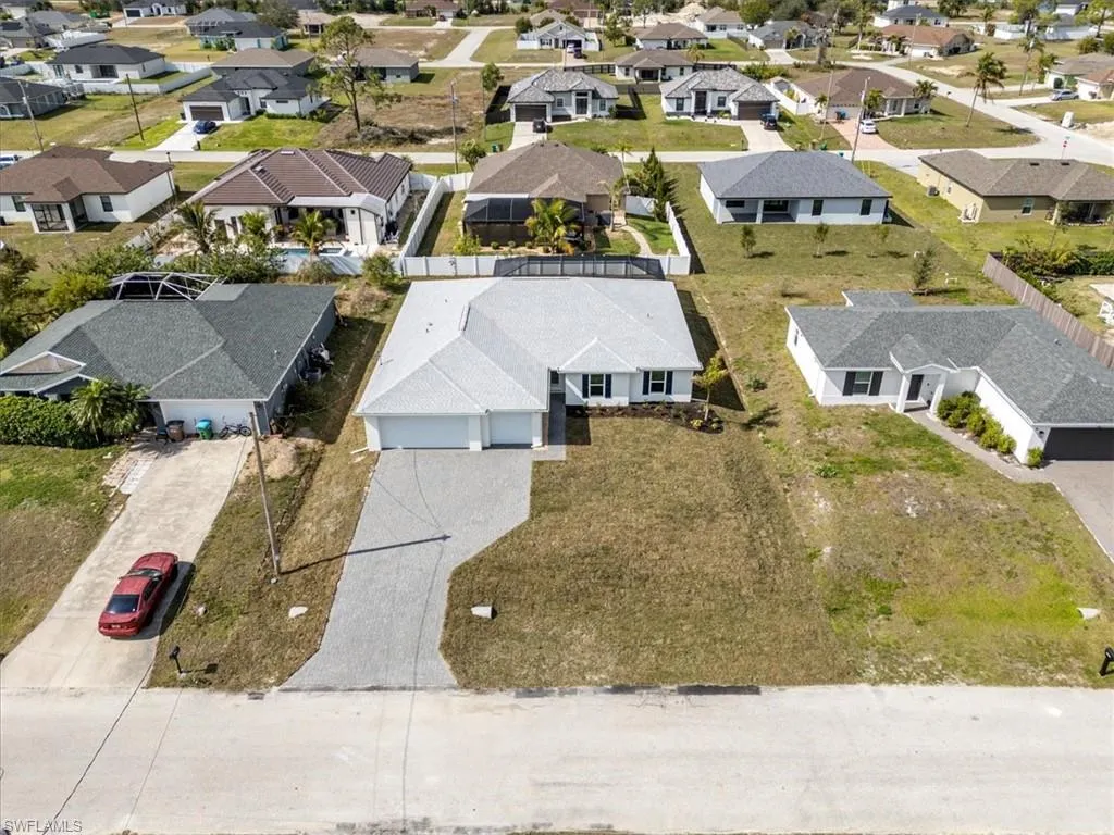 THIS HOUSE IS HUGE! This Spacious Pool Home features 4 large bedrooms, 3 full baths, Two Primary Suites! Welcome to your dream home! Featuring two luxurious primary suites, this home offers the perfect blend of comfort and elegance. Step inside and experience the open-concept great room, highlighted by a 12-foot triple slider that seamlessly connects indoor living to the expansive 1,100 sq. ft. under-truss screened lanai and heated pool. The gourmet kitchen is a chef’s delight, boasting soft-close, all-wood cabinetry, quartz countertops, stainless steel appliances, and an oversized walk-in pantry for all your storage needs. The first primary suite is a true retreat—spacious enough for a king-size bed and additional seating, with direct access to the lanai and pool. Unwind in the spa-inspired ensuite, featuring a freestanding soaking tub and separate shower. Perfect for out-of-town guests or related living, the second primary suite has a full bath that doubles as the pool bath and walk in closet. Built by a trusted local builder, this home offers incredible value in Cape Coral. Plus, enjoy peace of mind with a 10-year structural warranty, NO FLOOD ZONE + IMPACT WINDOWS = LOW INSURANCE COSTS. FENCE OPTIONS AVAILABLE, ask for details. Don’t miss out on this opportunity to live the Florida lifestyle at its finest. This is The Paradise Cove Plan