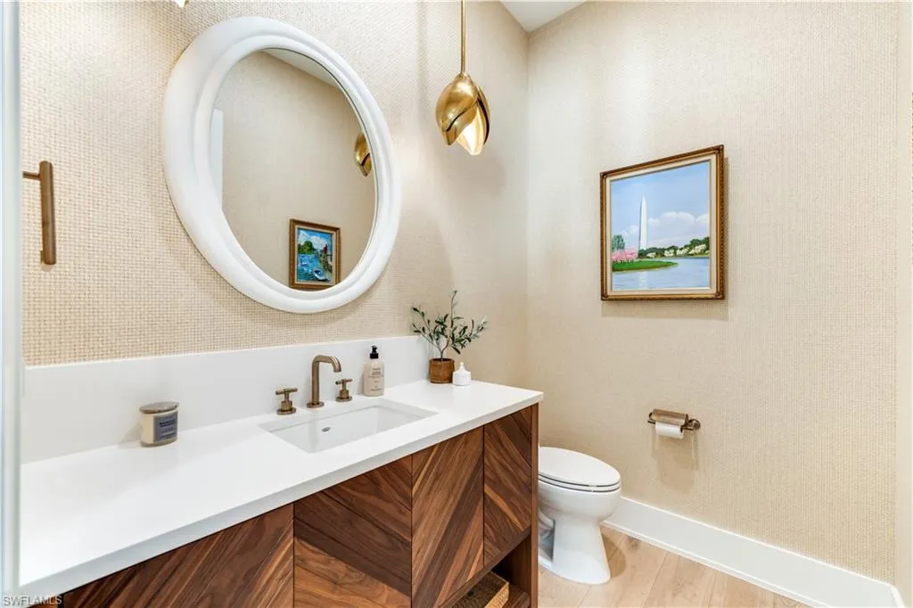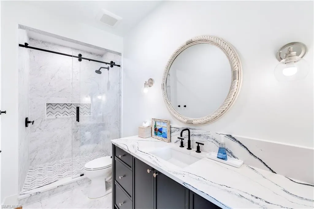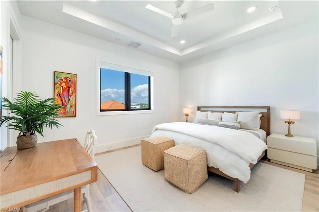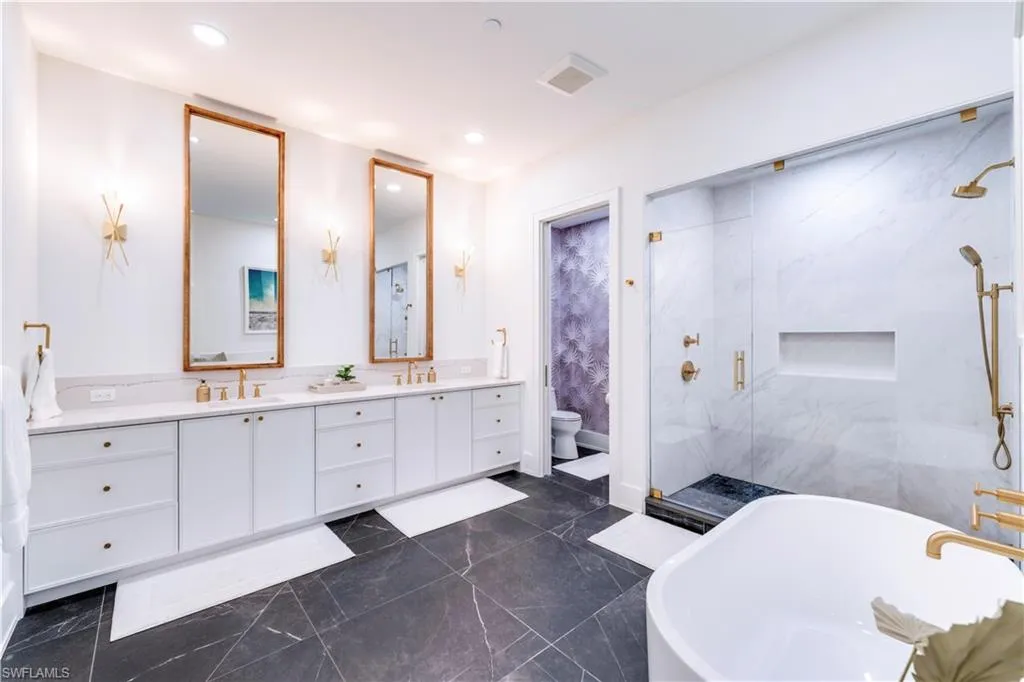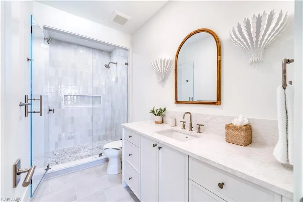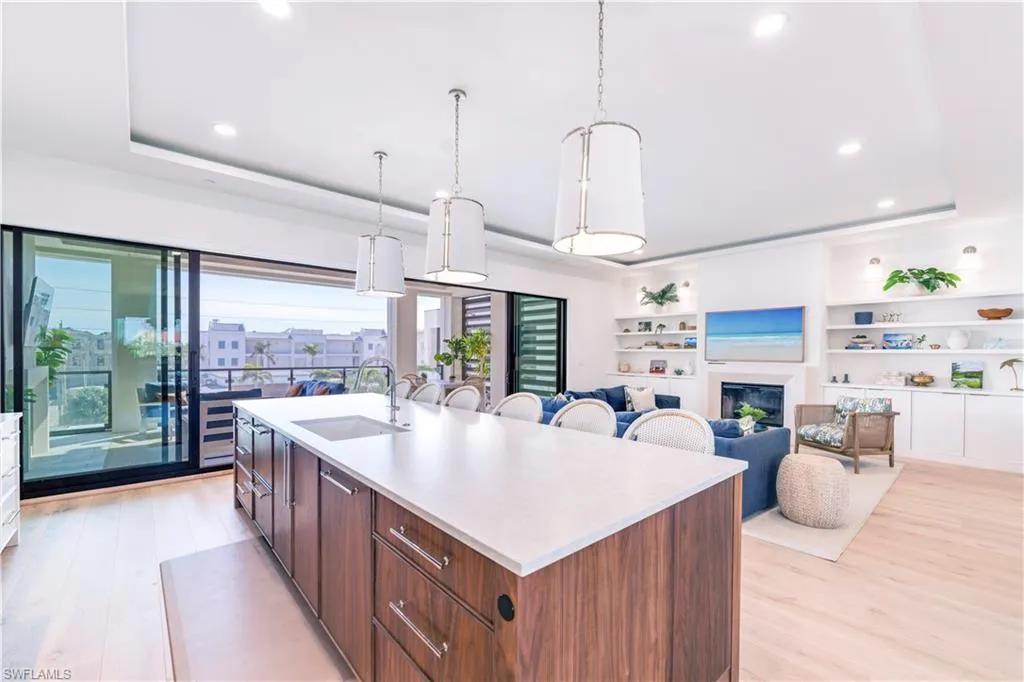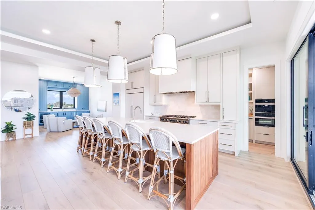Welcome to Residence 303 — a premier penthouse-style residence at Stella Naples, where modern elegance meets coastal sophistication in the heart of Olde Naples. Completed in 2024, this boutique luxury condominium development offers an unmatched living experience just minutes from the upscale dining and shopping of Fifth Avenue South and the sugar-white sands of the Gulf of Mexico. This one-of-a-kind, top-floor residence is a true showcase of architectural distinction and interior design. Styled with whimsical beach house elegance by the award-winning design team at LVD Spaces, this expansive three-bedroom, three-and-a-half-bath home boasts 2,875 square feet of open-concept living space with soaring 10-foot ceilings and a sun-drenched southern exposure. Every detail has been meticulously curated with highly customized designer finishes, from premium wall coverings to elegant lighting and tailored millwork. The gourmet kitchen is a culinary dream, featuring custom Ruffino cabinetry, quartz countertops, Sub-Zero refrigeration, and a striking custom slate blue Viking range — all seamlessly integrated into the open living and entertaining space. The expansive primary suite is a serene retreat, offering a spa-inspired en-suite bath with an oversized walk-in shower, bespoke fixtures, and generous walk-in closet. What truly sets Residence 303 apart is its exclusive private rooftop terrace — the only residence in Stella Naples to feature a dedicated internal staircase leading to its own 1,123-square-foot private rooftop oasis. Equipped with a built-in outdoor kitchen and natural gas fire bowl, this rare al fresco living space is ideal for entertaining under the stars or enjoying Naples’ year-round sunshine in total privacy. Residents of Stella Naples enjoy an array of upscale amenities, including a 42-foot resort-style pool with cabanas and expansive sun deck, a stylish Resident Lounge, state-of-the-art fitness center, and a dedicated turf pet park. Two deeded parking spaces with EV charging capability, private climate-controlled storage, and dual residents’ lobbies offer both convenience and comfort in this intimate, boutique community. Don’t miss this rare opportunity to own the signature residence in one of Naples’ newest luxury developments — an irreplaceable blend of style, privacy, and premier downtown location. Residence 303 is truly a masterpiece of Naples coastal modern living.