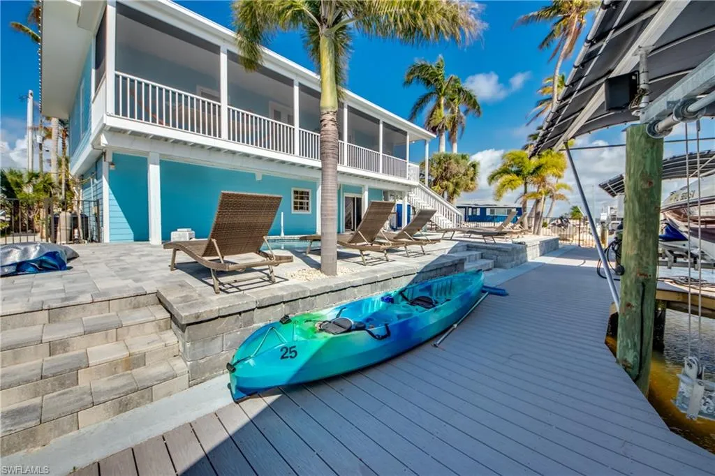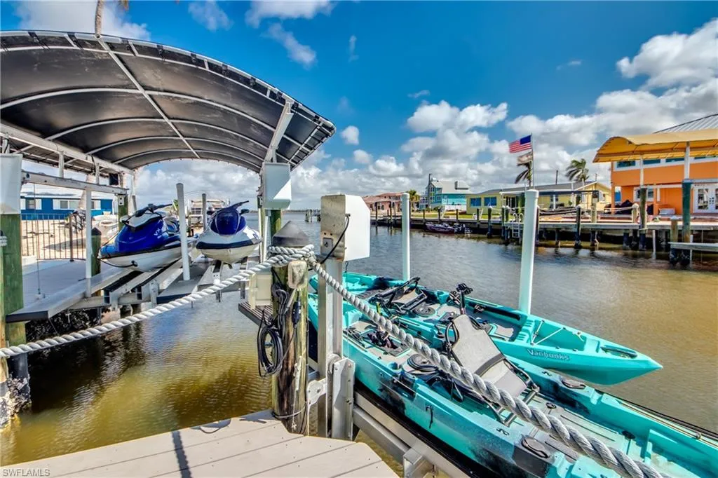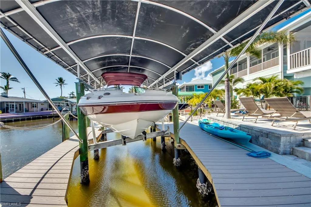 The open-concept living area flows out to a newly added balcony lanai where you can sip your morning coffee while watching the manatees and dolphins cruise down the canal and out to the Pass. Outside, the pool area just got a facelift with fresh pavers, a resurfaced pool, and plenty of space for lounging, grilling, or showing off your best cannonball. And for the water lovers: this home comes with a new 10,000 lb boat lift, 7,000 lb dual jet ski lift, and a kayak lift — because here in Matlacha, having more ways to get on the water is basically a love language. Boca Grande, the world-famous Tarpon capital, is just a quick 30-minute cruise away. Downstairs, the enclosed lower level is functional, insurable, and loaded with potential — think storage, hobby zone, or that tiki bar you’ve been secretly planning. Located in a highly desirable waterfront community with quick Gulf access, you’ll be surrounded by incredible fishing, kayaking, paddleboarding, art galleries, and dining. This home is move-in ready and just waiting for your personal touch (and maybe your flamingo float).