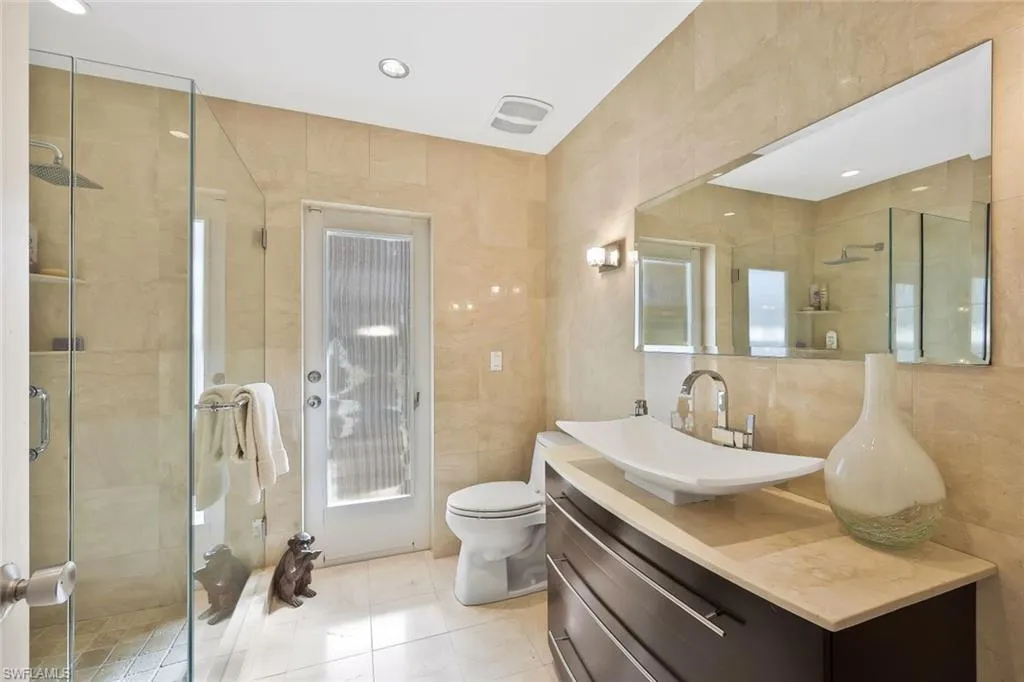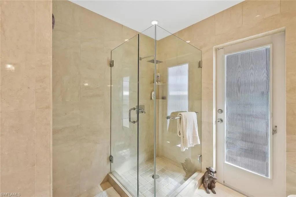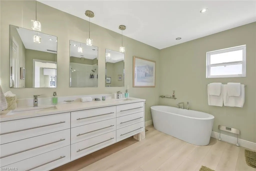Circular driveway, beautiful glass front doors entrance opens onto porcelain floors that flow throughout the living room, dining room, kitchen/great room, baths and hallway. Home was completely rehabbed in 2023. NEW METAL ROOF, NEW upgraded stainless appliances, bathrooms and so much more. Florida split bedroom design. Master bedroom opens onto lanai with ensuite bath offering double sinks set in quartz tops, modern freestanding soaking tub,, large tile shower and bidet/toilet combination. 2nd bath has floor to ceiling marble walls and floors, walkin seamless glass shower. Bath and 1 of 3 adjacent bedrooms opens onto pool deck.