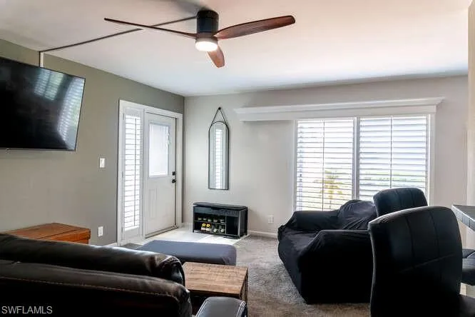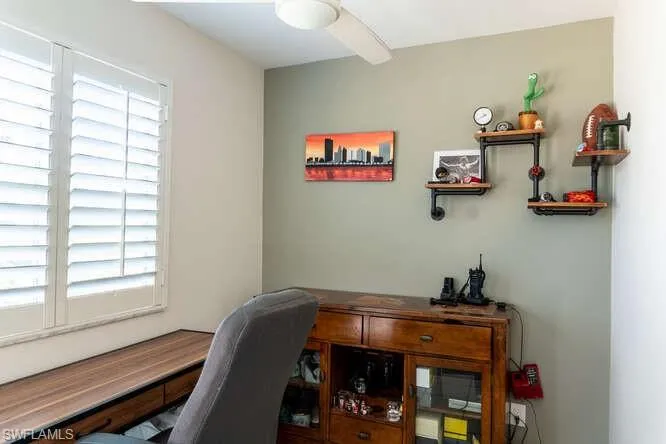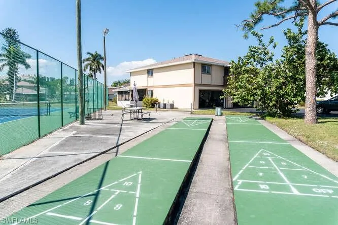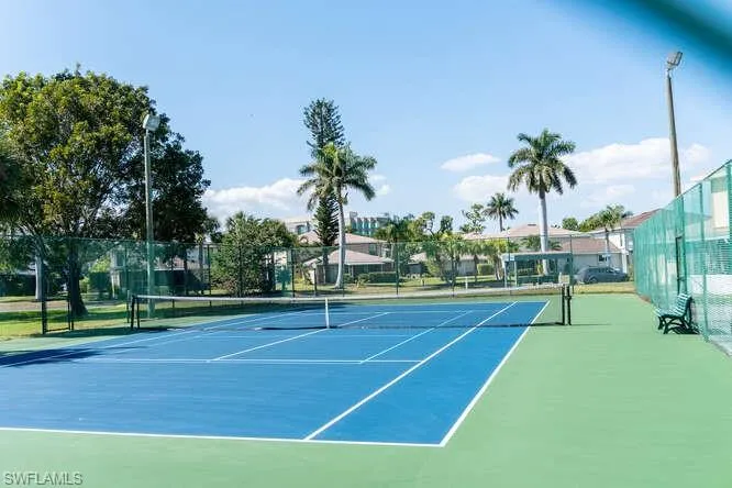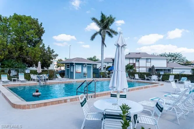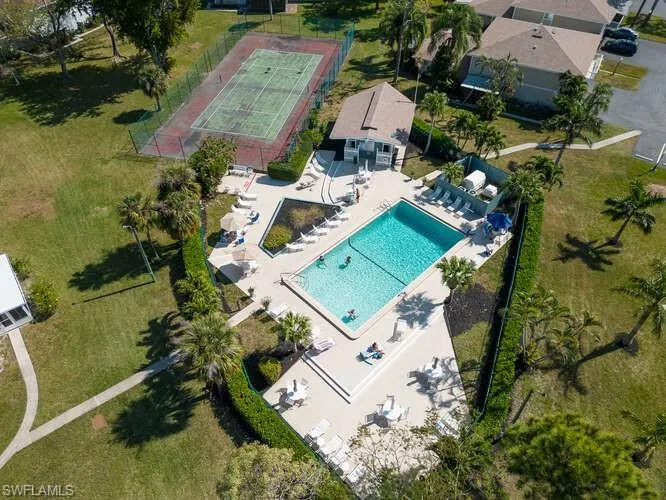 This charming townhome offers a comfortable living space within a secure, gated community. The first floor residence features 2 bedrooms and 1.5 bathrooms. Plantation shutters throughout the home. These upgrades add a fresh, contemporary touch to the home while ensuring functionality and style. Residents can enjoy community amenities, including two swimming pools and two tennis courts, with one of the pools conveniently located just steps away. Situated approximately 5 minutes from Bell Tower Shops and 3 minutes from Florida South Western State College, the property is surrounded by a variety of shopping, dining, and entertainment options. Townhome offers a peaceful living environment in a 24/7 secured gated community, making it an excellent choice for those seeking a modernized home with extra space in a desirable Fort Myers location. Family friendly community. Flood insurance is included with the HOA!