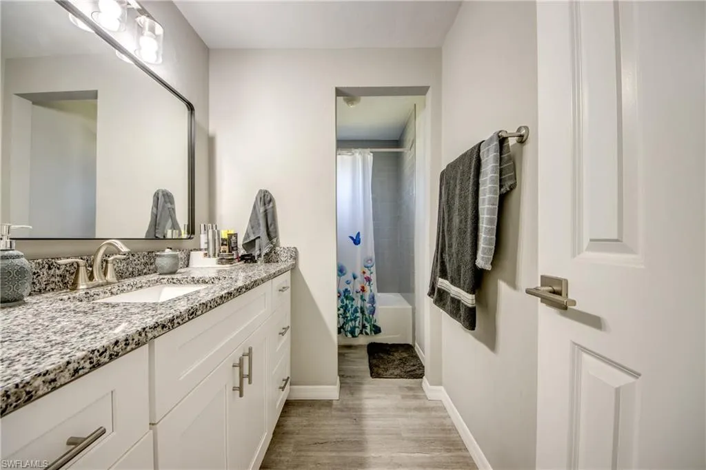 Welcome to your dream home in the heart of Fort Myers! This newly updated single-family home boasts 3 bedrooms, 2 bathrooms, and a 1-car garage, all situated on a quiet cul-de-sac. As you step inside, you’ll be greeted by the luxurious granite counters and stainless steel appliances in the remodeled kitchen. The open floor plan flows seamlessly into the living area, making entertaining a breeze. Complete with luxury vinyl plank flooring throughout that exudes elegance and charm. Newly updated bathrooms offer a spa-like retreat, with modern fixtures and sleek finishes. Outside, the expansive backyard provides ample space for outdoor entertaining, gardening, or simply relaxing in the sunshine. Enjoy peace of mind with a recently replaced roof and metal hurricane shutters. This home truly has it all – from the stylish updates to the generous lot size, every detail has been carefully curated to create a space that is both functional and beautiful. Don’t miss your chance to make this house your forever home!