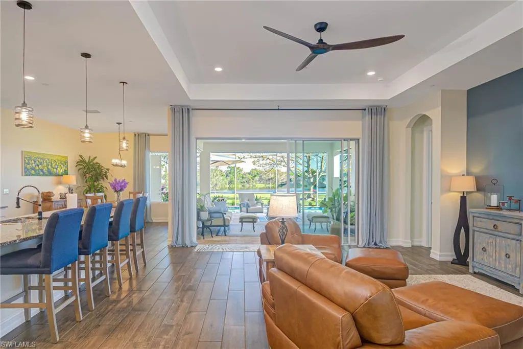 Spanning over 3,200 square feet, this spacious home features a modern great room that seamlessly opens to a private, lush lanai and sparkling custom pool—your personal outdoor oasis for relaxing, entertaining, or enjoying serene lake views. The large, low-maintenance yard provides peace and privacy in a tranquil setting.