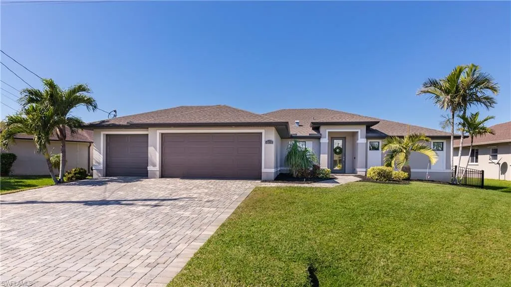 Welcome to your slice of paradise in the highly sought-after Southwest Cape Coral community. Perfectly located near top dining, shopping, and waterfront entertainment, this pool home blends everyday comfort with Florida lifestyle living. Inside, you’ll find an open and inviting layout with large tile flooring, crown molding, and fresh paint that creates a bright, airy feel. The kitchen serves as the heart of the home—featuring upgraded granite countertops, glass subway tile backsplash, stainless steel appliances, and a pantry—seamlessly connecting to the living area for effortless entertaining. The spacious Primary Suite is a true retreat, complete with tray ceiling and crown molding, dual custom closets, and a spa-inspired ensuite with frameless glass shower, dual vanities, and granite countertops. Step outside to your private backyard escape. A screened lanai with heated pool, generous under-truss living/dining area, and lush landscaping set the stage for year-round relaxation and gatherings. The fenced yard adds both privacy and peace of mind. Recent updates include a newer 4-ton SEER A/C and 4-ft aluminum fence with dual gates. Move-in ready and impeccably maintained, this home offers the perfect balance of style, function, and location in one of Cape Coral’s most desirable neighborhoods. Schedule your private tour today!