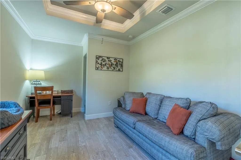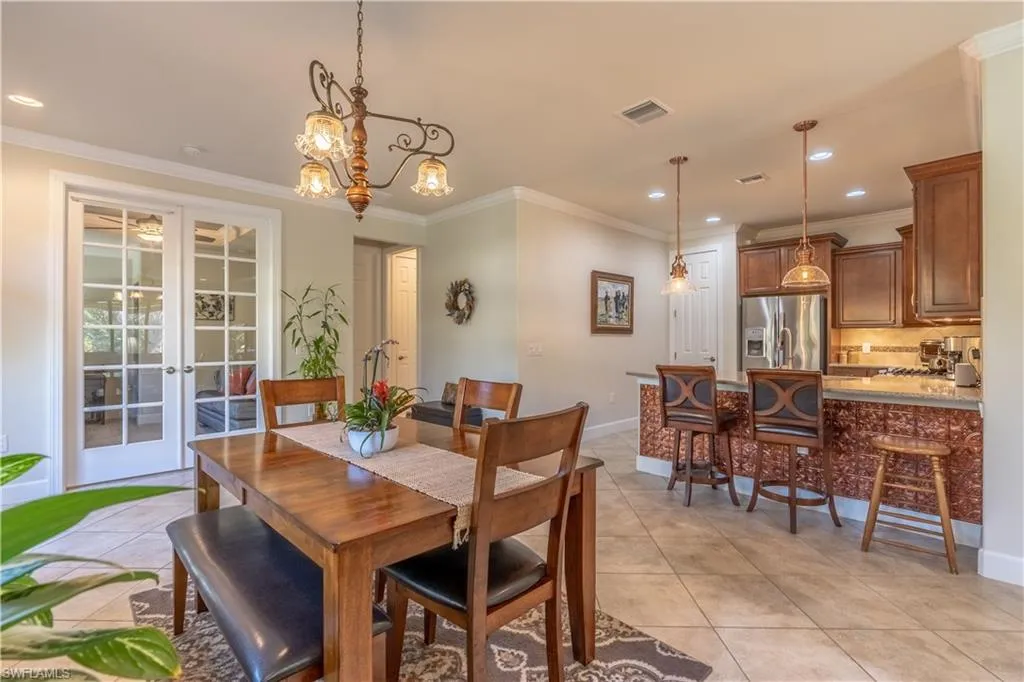 Inside, the versatile third bedroom can function as a den or guest room, featuring French doors and a closet. Elegant interior upgrades include crown molding, tray ceilings, built-in speakers, a security system, custom closet systems, and stunning diagonal tile flooring—just to name a few! Winding Cypress is a natural gas community with resort-style amenities! Dine at Shady Palm, the onsite restaurant, or enjoy pickleball, bocce, tennis, a state-of-the-art fitness center, a resort-style pool, a community garden, and even a dog park for your furry friend. This pet-friendly community allows rentals, has low fees, and boasts a prime location—central to Marco Island, 5th Avenue, and I- 75.