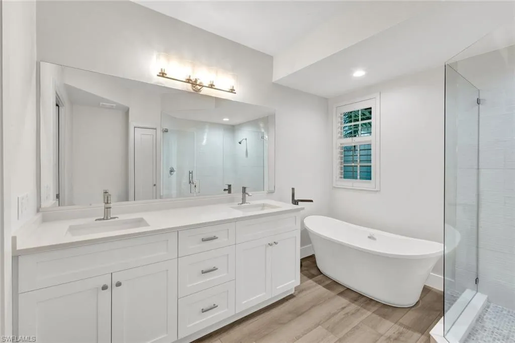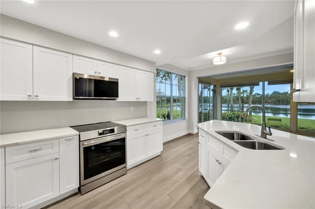 Enjoy one of the MOST AMAZING VIEWS IN Bonita Bay in the exclusive Community of Greenbriar. This 3-bedroom, 2 bath home features tons of sunlight and spectacular water views! This Home has been 100% Remodeled and Updated. New Kitchen, New Floors, New Appliances, New Paint, New Bathrooms (I can go on and on – New Everything) Lake vistas in rear when glancing out from the Kitchen, Great Room, Master Bedroom, or spacious Glassed-in lanai. Plenty of windows allowing the outside to reflect inwards. This Lower Level (1st. Floor Unit) Has a Two (2) Car “Attached” Garage. Two (2) Car Garages are Rarely found in Florida…. If views are one of your Dreams, this is your place. Greenbriar boasts its own large community pool/spa and two tennis courts for the exclusive use of Greenbriar residents and is centrally located within the gated community of Bonita Bay. The brand-new pavilion/pool house also has a 75″ TV & upgraded tile/granite features and Plenty of social activities. Bonita Bay amenities include a private beach park on the Gulf of Mexico, over 12 miles of walking and biking paths, canoes/kayaks at 2 of 3 resident parks, full marina with gulf access along with Boat storage inside or out and Backwater Jack’s for dining. The Bonita Bay Club is member owned and offers 5 golf courses, 18 tennis courts, 10 pickleball courts, restaurants, spa and salon, state-of-the-art fitness center, resort style swimming pool and social activities. The Bonita Bay Club offers some of the finest amenities in Southwest Florida with memberships available, but not mandatory.
