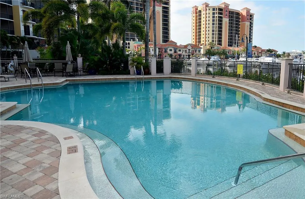 “RESORT LIVING” on the Water. Some of the best restaurants and live entertainment Cape Coral has to offer are steps away from your lovely home with a view of a yacht-filled marina. Two pools, a beautiful club house, tennis courts, basketball court, work out facility, miles of walking/biking paths, all await you with this lovely appointed, highly desirable Cayman Floor Plan Condo. 2BR/2BA fully furnished unit with split bedroom floor plan with ample parking in covered private garage. Large screened in lanai overlooking the marina extends from the living area to the primary BR. Washer and Dryer included. Just outside the resort within a mile offers more restaurants, sports bars, groceries, pharmacy, nail salon, banking options, donuts, and pizza. You will be spoiled by the convenience.