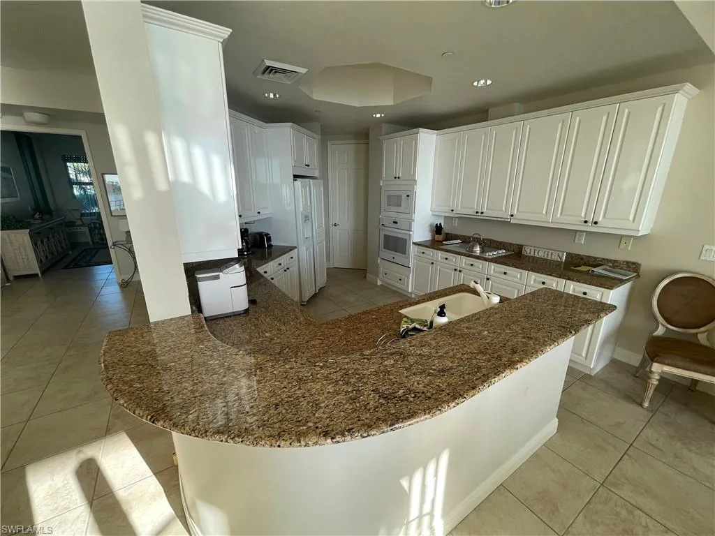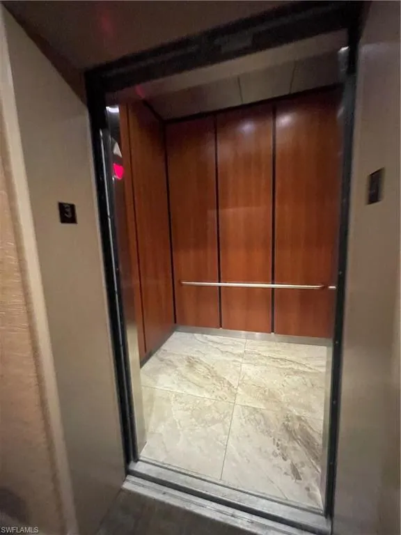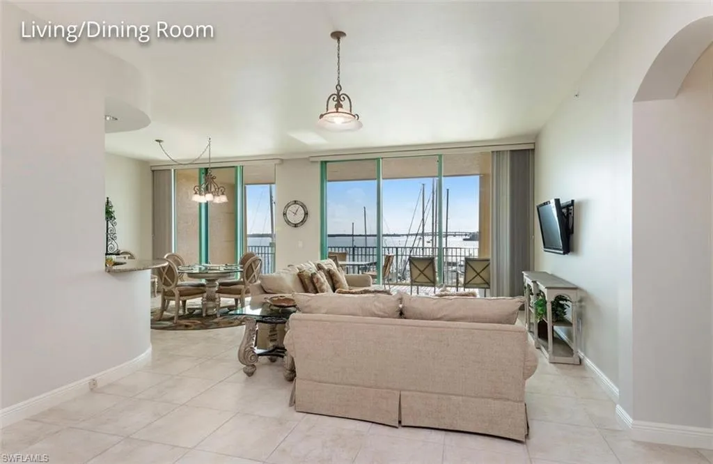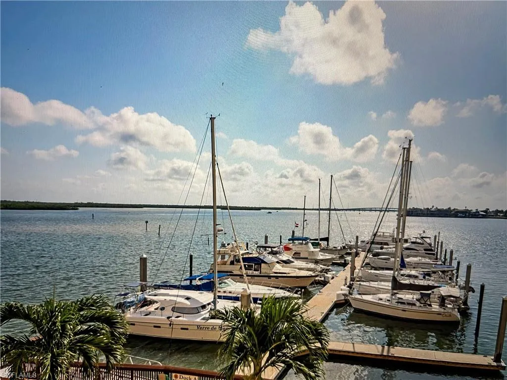 STUNNING WIDE VIEWS of Marco Island’s Riverfront leading to the Gulf of Mexico! Enjoy morning coffee and majestic sunrises from the private 45′ lanai! Watch dolphins, manatees and boaters passing by! This OPEN FLOOR PLAN in the prestigious Pier 81 Community boasts 2 bedrooms plus a den/3rd bedroom, 2 full baths, separate laundry and expansive living area! There is plenty of room for entertaining! A perfect location with beautiful beaches, fine restaurants, shopping, churches, all within minutes, and easy access on and off the Island! When you drive over the Marco Island Judge Jolly Bridge, you’ll see Pier 81 in the distance along the beautiful waterway. You will notice islands where birds find sanctuary. PRISTINE Pier 81 North is the place you’ll call home nestled in mature landscaping, with a Clubhouse, 2 pools, spa, fitness room, clay tennis courts, outdoor grilling area and marina. The living area and primary bedroom features IMPACT sliders showcasing the fabulous views! The bright dining area is complimented by neutral, warm tile. The kitchen is very comfortable with volume ceilings and a pantry, white appliances, double oven, impressive granite countertops, and lovely backsplash. The den/office features a balcony surrounded by lush landscaping and is ideal as a spare bedroom or home workplace. The primary bedroom is large with volume ceiling and a walk in closet with a stately, generously sized bath including dual vanities, separate tub and shower. The guest bedroom is light and bright adjacent to a full bath with a shower, neutral wood tile, single vanity and accent window. The laundry room features a washer/dryer and utility sink with white wood cabinets. The elevator takes you to your floor where only 2 units are located to ensure your privacy. Extra storage for beach chairs, bicycles can be found in a separate air conditioned room in the clubhouse. Under building car garage with elevator makes accessing your condo convenient! A short walk to restaurants, boat rentals, water sports, bike rentals and shopping!