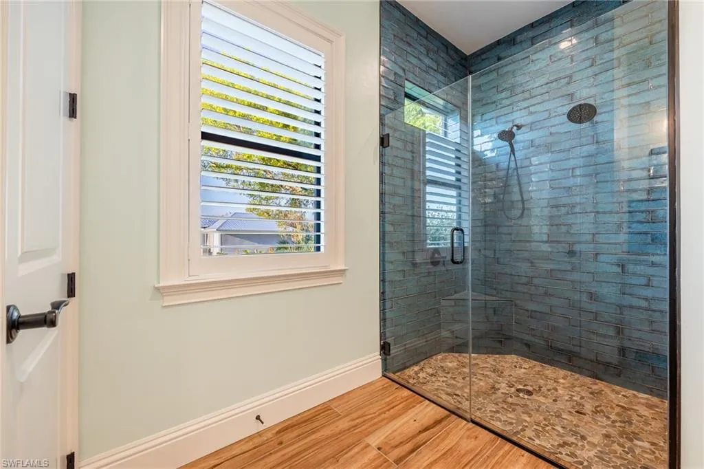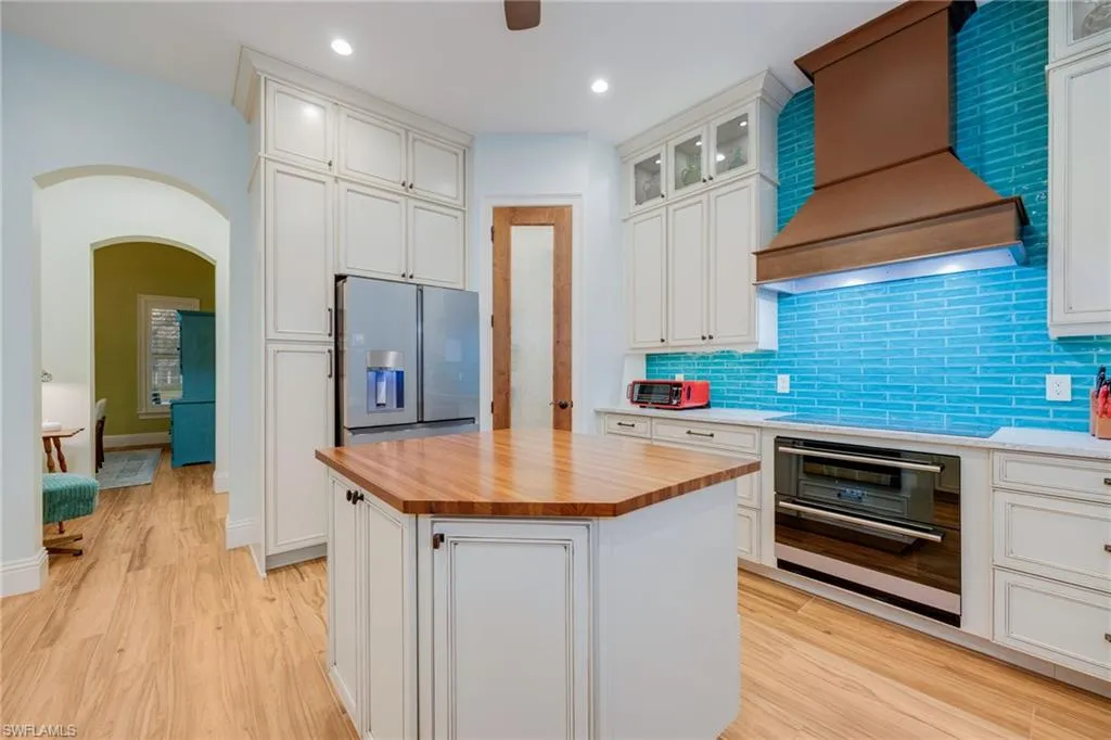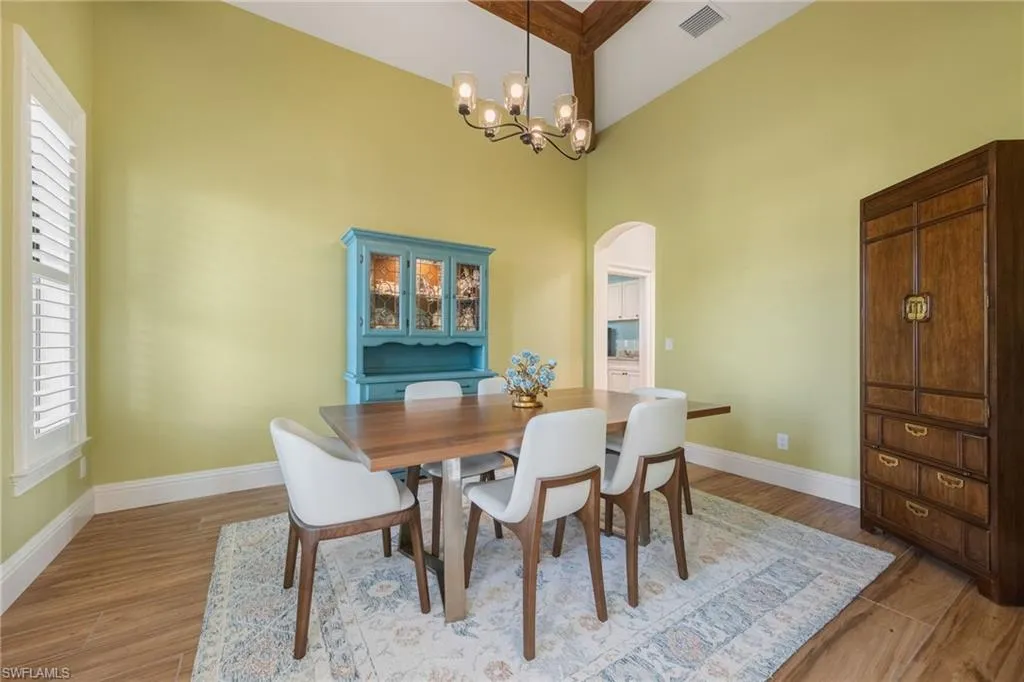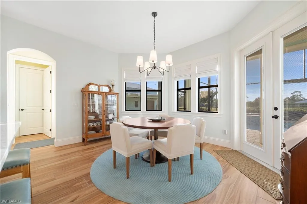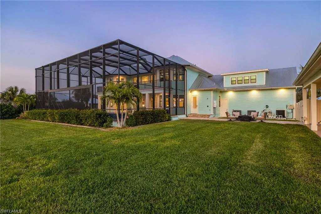 Nestled within the exclusive Horse Creek community, this custom-built estate offers an unparalleled blend of luxury, space, and artistic design. Set on 2.23 acres, this 3-bedroom + flex room, 3.5-bathroom home spans 4,200+ sq. ft., boasting exquisite craftsmanship, and high-end finishes. Sitting along the Orange River, residents enjoy kayak storage, peaceful water views, and a connection to Florida’s natural beauty. With estate-sized home sites rare in Southwest Florida, this property stands apart as a true sanctuary of elegance and privacy. From the moment you arrive, the home’s Tame Teal exterior and classic Hardie board siding exude charm, perfectly complementing its Old Florida architectural style. Inside, a carefully curated color palette enhances the light-filled spaces—Embellished Blue in the main living areas, Beach Dune for a serene touch, and Hearts of Palm green in the dining room and half bath for a refreshing contrast. The soaring coffered ceilings and open floor plan create a seamless flow, perfect for both everyday living and entertaining. The living room’s showpiece is a custom, hand-crafted Pewabic Pottery fireplace, designed by the historic Detroit ceramics studio founded in 1903. This rare and stunning feature is a testament to the artistry woven throughout the home. The spacious kitchen is a work of art in itself, featuring GE Café appliances, a reverse osmosis system, and a striking handmade aquamarine ceramic tile backsplash from Soho Studio in New York. Custom cabinetry, high-end finishes, and an oversized island make this space both functional and visually stunning. The primary suite is a private retreat, complete with an ensuite laundry area in the master closet, providing ultimate convenience. The additional bedrooms and flex room offer versatility for a home office, gym, or guest accommodations. Step outside to your screened-in pool and spa, where you’ll enjoy breathtaking western exposure sunsets. The expansive patio and fire pit area offer the perfect setting for entertaining or unwinding under the stars. Car enthusiasts, hobbyists, toy collectors and adventurers will love the garage and outbuilding spaces: 3 attached garage spaces, 2,704 sq. ft. detached garage/outbuilding with 50-amp service, water, and sewer, RV/Boat storage with two 14×14 doors and one 10×10 door. This estate is truly one-of-a-kind, combining luxury, artistry, and functionality in one of Southwest Florida’s most desirable communities.