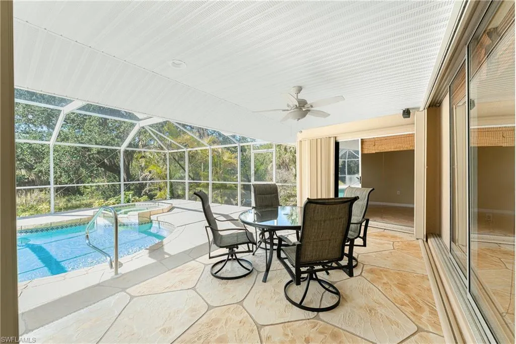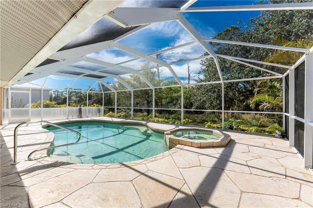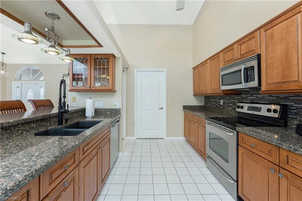 One or more photo(s) has been virtually staged. Welcome home to this charming 3-bedroom, 2-bathroom pool and spa home located in the desirable, deed-restricted community of Burnt Store Lakes. With 1908 sq ft of living space under air and large diagonal set tile throughout, this home has been thoughtfully updated to offer modern comfort and style. Enjoy the benefits of a Roof and A/C System that were replaced in 2022, The plumbing has been updated in 2024 and includes a new water meter to the house. From the freshly updated plumbing and HVAC system to the beautifully remodeled kitchen and bathrooms, every detail has been carefully considered. The home features an inviting open floor plan with a spacious Great Room that flows seamlessly into the dining area, kitchen, and dinette space. The Great Room boasts high ceilings and 8 foot sliding glass doors that showcase the pool/spa, yard and trees beyond. The kitchen boasts stainless-steel appliances, granite countertops, raised panel wood cabinets including a curio cabinet, a deep sink, and a decorative tile backsplash. Enjoy the added convenience of a breakfast bar and a lovely dinette area that overlooks the screened lanai and western-facing pool area. The generous Primary Suite is a private retreat, offers a sitting area, walk-in closets, ensuite bath and direct access to the pool area. The En-suite bathroom has been updated with a double vanity, high countertops, comfort seat commode and a luxurious custom walk-in shower with a bench seat. The home’s two large guest bedrooms are located on the opposite side of the house, providing privacy for your visitors or family. The guest bath has also been thoughtfully remodeled, with a tiled combination shower and tub. Step outside to your very own private oasis consisting of .30 acres. Relax and unwind in the pool and spa, with stamped concrete deck and 2020 pool pump and screens and the screened lanai with large cover area is perfect for dining alfresco. The spacious backyard offers privacy, perfect for outdoor living, entertaining or just relaxing. For peace of mind, you’ll find easy to use Accordion Hurricane Shutters and also find a screened entry to this home as well as. Burnt Store Lakes Residents enjoy the Community Park which has covered picnic benches, a playground and restrooms. There is a kayak ramp for Residents only that accesses Charlotte Harbor and the incredible wildlife in the Charlotte Harbor Aquatic Preserve such as Manatees, porpoises, sea turtles and an abundance of game fish. Next door at Burnt Store Marina, SW Florida’s full-service deep-water marina, restaurants are open to the public and amenities such as golf and boat dockage may be available. It’s just a short drive to Downtown Punta Gorda, one of Florida’s best small towns, with plenty of restaurants and town activities to enjoy. Or to Cape Coral, one of the fastest growing cities in Florida. It doesn’t get any better than this to live your dream Florida Lifestyle.