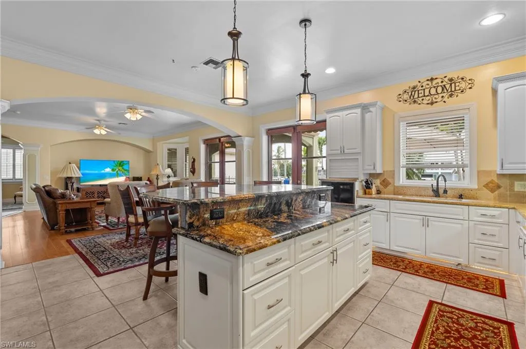 Welcome to this exquisite direct gulf access pool home, where luxury and comfort meet breathtaking waterfront views. Located in one of the most desirable neighborhoods, The Harborage, providing two aquifer-fed lakes totaling 104 acres, 30 feet deep. Each lake has its own launch ramp, swimming raft and sandy beach. You can enjoy active sports like jet-skiing, slalom skiing, sailing, swimming or fishing (large-mouth bass, bluegills, and catfish). This sprawling estate offers over 4,400 square feet of meticulously designed living space. With 5 spacious bedrooms, 4.5 bathrooms, a den and an array of high-end finishes, this property promises the ultimate in Florida living. As you step inside, you’ll be captivated by the soaring ceilings, expansive windows, and an abundance of natural light that creates a seamless flow between indoor and outdoor spaces. The oversized primary suite is your private retreat, offering serene water views, a luxurious en-suite bathroom with a soaking tub, walk-in shower, and dual vanities. Each of the additional bedrooms are generously sized, providing plenty of space for family or guests.