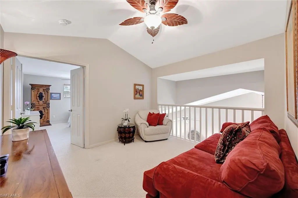 Best buy and rarely available. Move-in-ready villa in the desirable Villages of Monterey! This spacious 2-story home offers 3 bedrooms + den, 2.5 baths, a loft, and 1-car garage with lake and landscaped views from the screened lanai. Located on a quiet cul-de-sac, it’s just a short walk to the renovated clubhouse and resort-style pool. Enjoy 1,830 sq. ft. of living space with vaulted ceilings, tile flooring, and a cozy fireplace. The updated kitchen features newer stainless-steel appliances, ample cabinetry, plenty of prep space, and two breakfast bars—perfect for casual meals or entertaining. Step outside to your private courtyard patio, ideal for morning coffee, reading, dining al fresco, or gardening. The elegant bathrooms offer walk-in showers and custom cabinetry. The upstairs loft works well as a home office, guest room, or play area—offering flexible space for family and visitors. Monterey is centrally located off Orange Blossom Dr. near Airport-Pulling and Goodlette-Frank, close to top-rated schools, Mercato, Waterside Shops, beaches, Whole Foods, and more. Community amenities include 24/7 guard-gated entry, a remodeled clubhouse, fitness center, Har-Tru tennis courts, pickleball/basketball sports court, playground, and pet-friendly policies. A must-see home perfect for a variety of lifestyles!