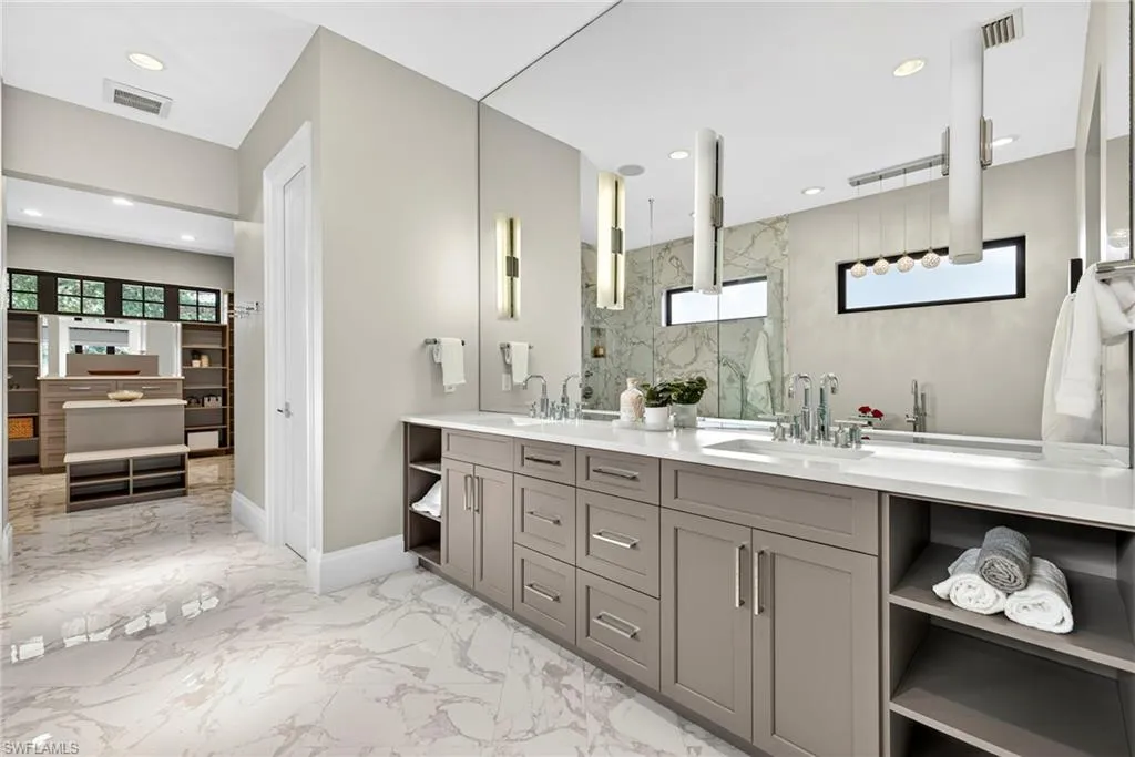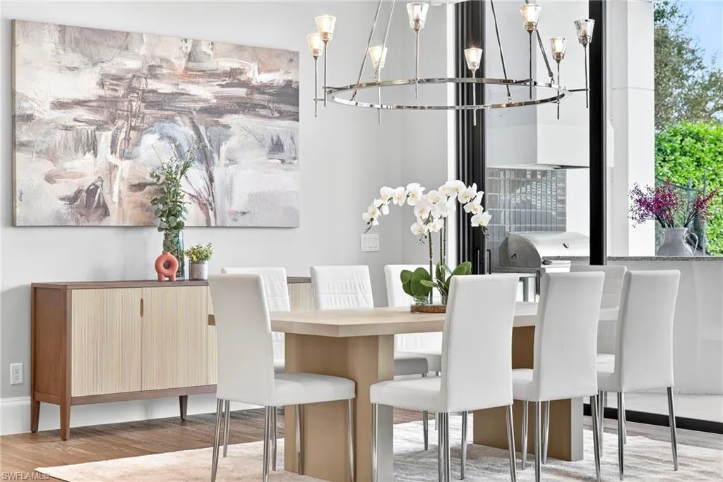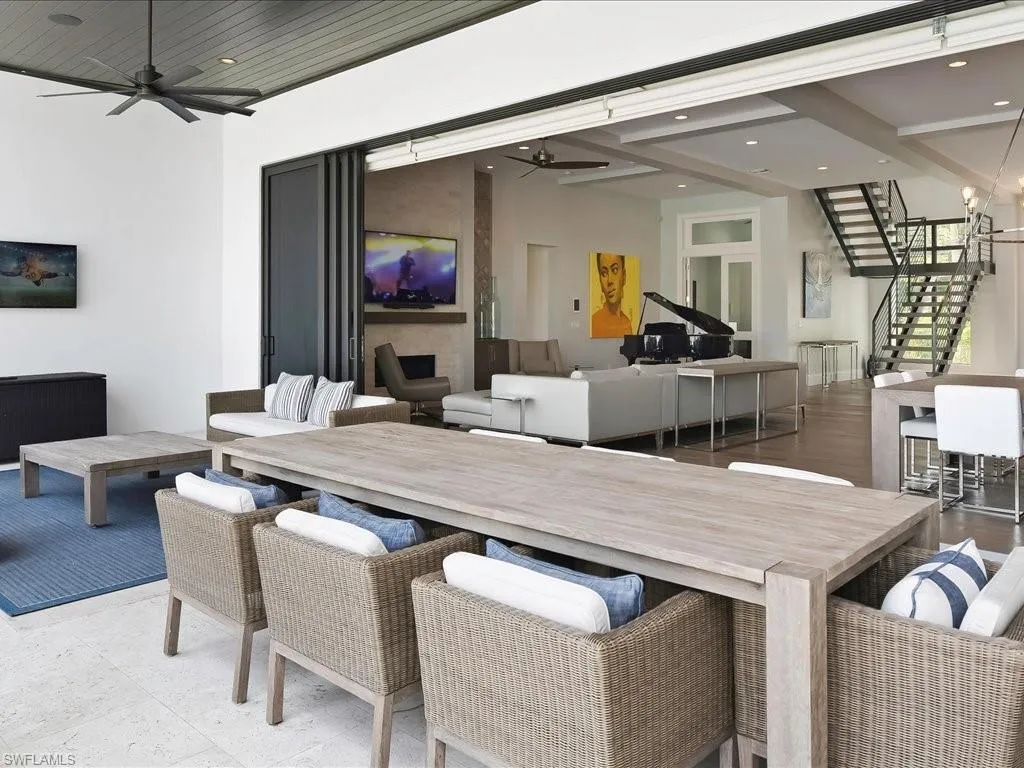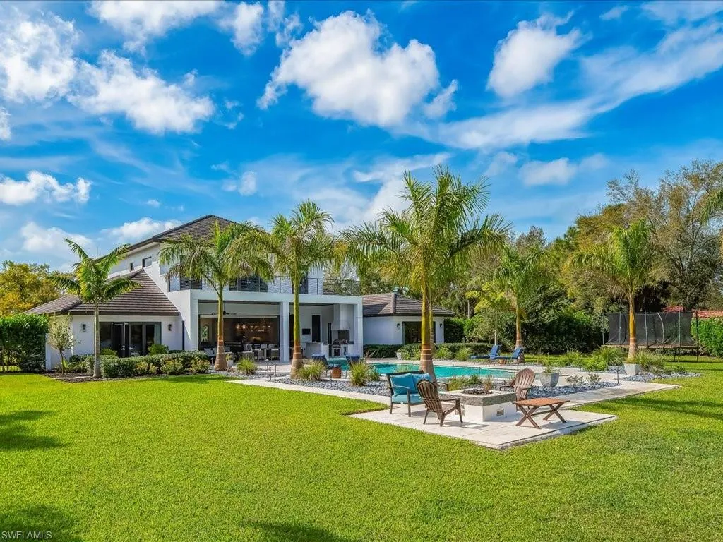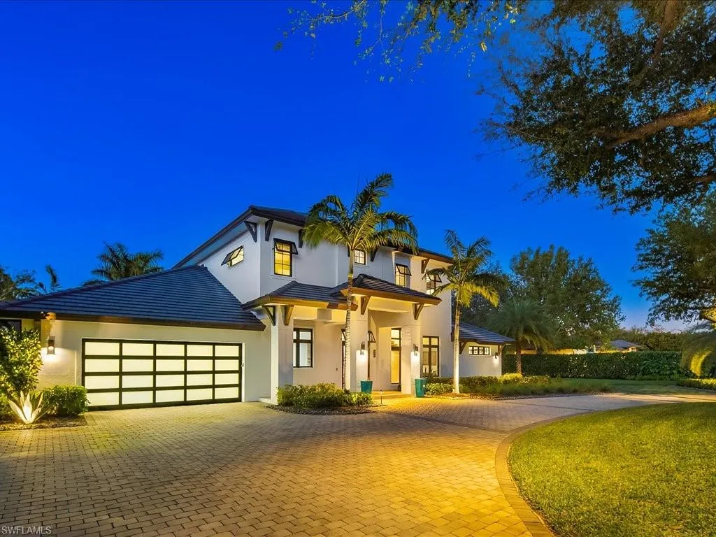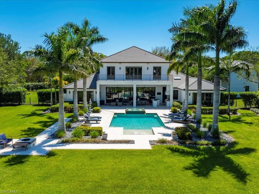 Nestled on an extraordinary 1.29-acre lakefront lot in the coveted Pine Ridge Estates, 101 Carica Rd is a breathtaking custom-built masterpiece designed for luxury living. This exceptional residence seamlessly blends modern elegance with resort-style comfort. From the moment you step inside, you are welcomed by an open-concept great room where the high-end chef’s kitchen flows effortlessly into the dining and living areas. Designed to impress, the kitchen boasts Thermador stainless steel appliances, a six-burner gas range, granite countertops, a Pompei quartz island, and a Carrara marble backsplash. White oak floors, a floating staircase, a striking fireplace, a media loft, and an oversized balcony further elevate the home’s refined aesthetic. Additional highlights include a private exercise room and expansive windows that flood the space with natural light. In addition to the exquisite main house, a beautiful guesthouse combined with an additional garage were constructed in 2022 to expand the property’s functionality and appeal. Thoughtfully designed for hosting, the guesthouse features a spacious bedroom, full bath, living area, and kitchenette—offering guests privacy and comfort in a luxurious setting. For added convenience, the guesthouse includes a private elevator. The newly built garage provides extra space for vehicles, storage, or recreational gear, seamlessly complementing the estate’s overall design and livability. The outdoor experience is equally captivating, featuring resort-style landscaping, an expansive outdoor living area, a Bose automated sound system, architectural landscape lighting, an outdoor kitchen, a fire pit, and a stunning pool with a negative-edge spa overlooking the serene lake. Perfectly positioned just minutes from Waterside Shops, Ritz-Carlton, Mercato, and downtown Naples’ world-class dining, shopping, and white sand beaches, this home embodies the pinnacle of modern luxury in one of Naples’ most sought-after communities. Don’t miss this rare opportunity to own a piece of paradise in Pine Ridge Estates.