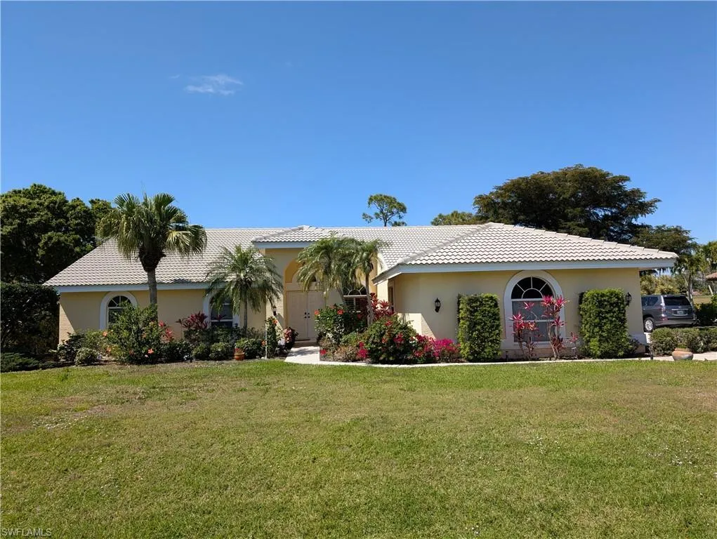 You will not want to miss this very quaint golf course home in Fiddlesticks. This split bedroom floor plan is the perfect size with over 2300 sq.ft. under air with 3 bedrooms, 2 baths, spacious 3 car garage, high ceilings, heated pool, and views of #13 of the Long Mean golf course. Upon entering, take in the views through the 8′ sliders from the formal living & dining area. You will love the large open kitchen with breakfast bar, lots of cabinet and counter space, pantry cabinets. The kitchen encompasses a breakfast nook and opens to the great room and is light, bright & open and features a wood burning fireplace. The owner’s suite has vaulted ceilings, large bath with separate tub and shower, and a HUGE walk-in closet with built-ins. The laundry is oversized with cabinet and counter space, utility sink, and walk-in closet. Relax outside under the screened lanai area overlooking the tranquil heated pool. There is plenty of space for grilling and serving your specialty in the undercover entertaining space. Other updates include new AC (2024), brand NEW pool pump(March 2025), new irrigation system, new lanai screens (2023). freshly painted pool deck, newer flooring in owner’s suite…and the home comes totally furnished/turnkey. Fiddlesticks has 36 holes of championship golf, driving range, resort-style pool & spa with cabana, clubhouse with fine dining, lighted tennis courts, dog park, pickleball & bocce. Own your own golf cart. Membership fee of $115,000 due at closing. NO WAIT LIST HERE.