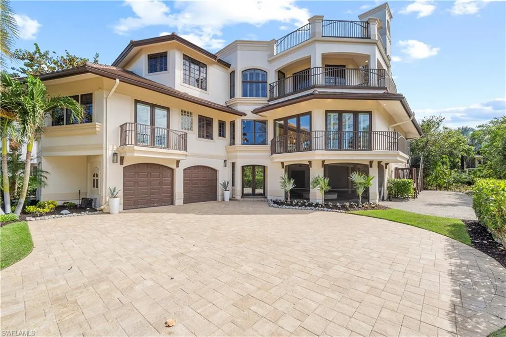 Stunning custom-built residence with modern elegance just steps from Hideaway Beach Club’s clubhouse and private access beach. On one of the only beachfront streets in serene and private Hideaway Beach this luxury residence boasts 4 bedrooms, Den, and 3.5 bathrooms over 3 stories of living area – directly across the street from the beach. Extensively renovated in 2021 to the highest standards, this home offers the finest of luxury living in Marco Island’s premiere gated community. The top-floor owner’s suite is an opulent retreat, featuring a private den/office, coffee bar, large bathroom with soaking tub, walk-in shower, large double vanities, custom walk-in closet and a private balcony, plus breathtaking Gulf of Mexico views from both the bedroom and connected rooftop spiral staircase, and access from the ground-level foyer via private elevator. The second primary suite on the main level offers large and comfortable living for guests or family, with ample space and a Juliette balcony. Double vanities and a large shower with separate soaking tub, along with a large walk-in closet complete the second main suite in the home. Designed with the intention to accommodate every luxury, entertainment, and relaxation need in mind, the home boasts a sprawling outdoor oasis, newly refined, complete with a large pool and spa, expansive outdoor living area, and a fully equipped outdoor kitchen and bar areas. On the lower level, the home offers an oversized 2-car garage, ample storage space in a large flex room, plus convenient covered golf cart parking. Impact-resistant doors and windows throughout, plus recent upgrades including new A/C units, a new water heater, new washer/dryer, new pool pump and heater, and a pool refinished in 2023, ensure comfort and peace of mind. Every detail of this meticulously and professionally decorated home has been carefully curated. The world class Hideaway lifestyle with miles of beach, new state of the art sports center coming soon in Fall 2025, plus golf, tennis, pools, dining, and more can be found in this 24-hour manned and gated community that is the gem of Marco Island.