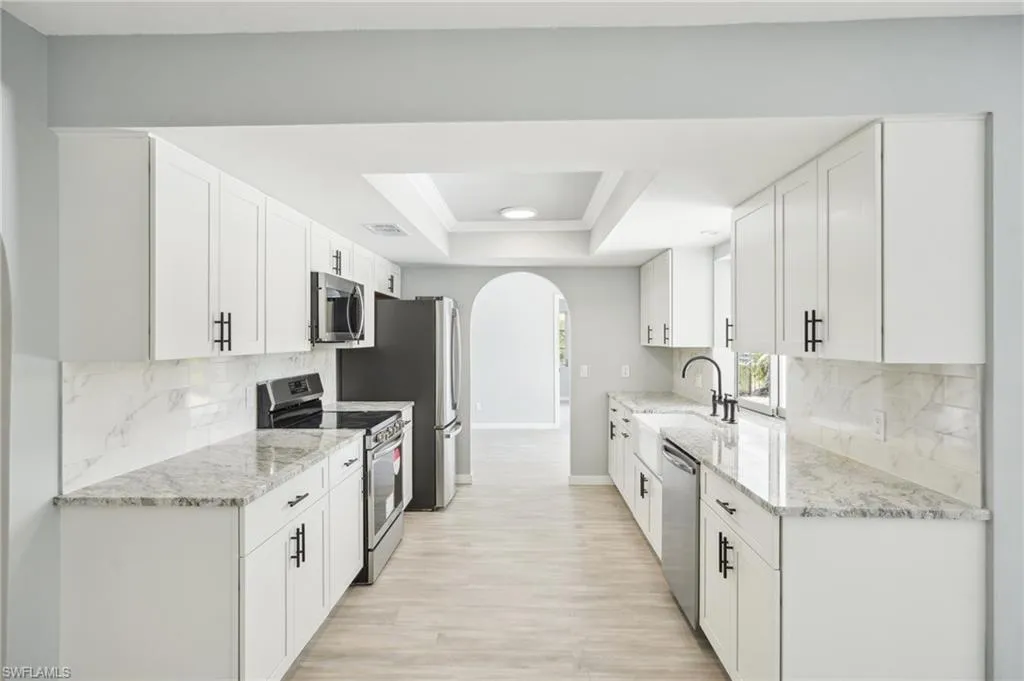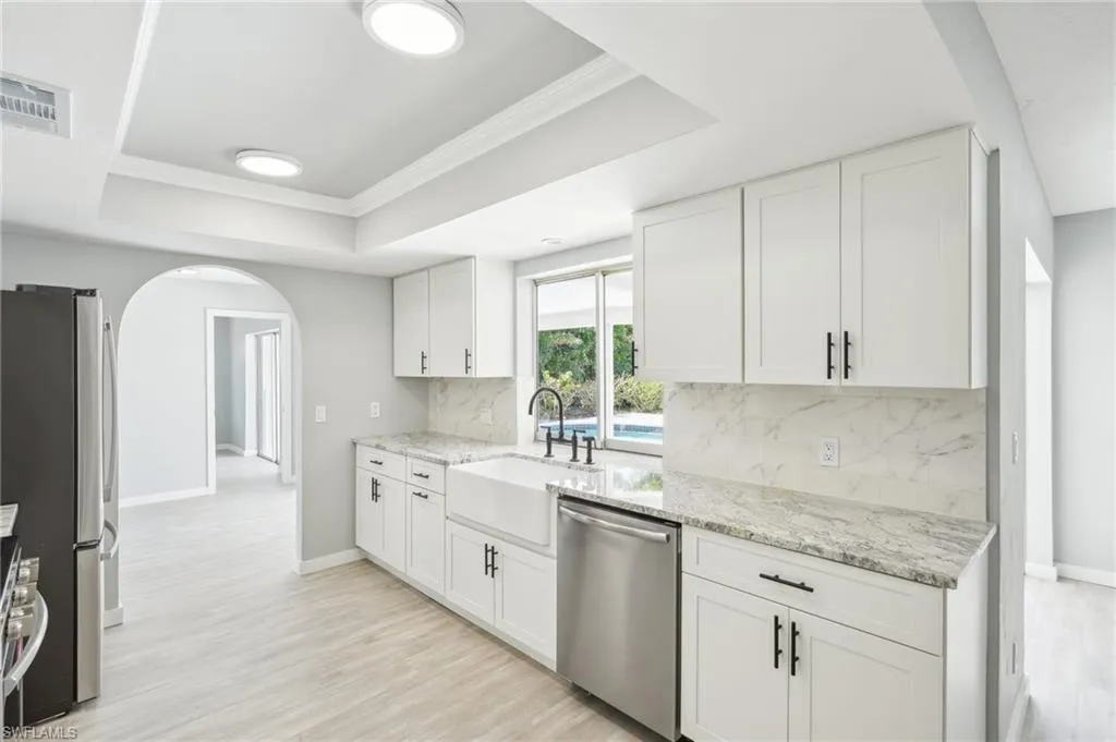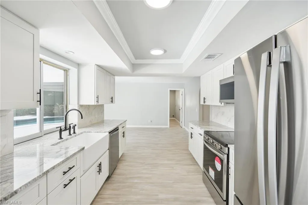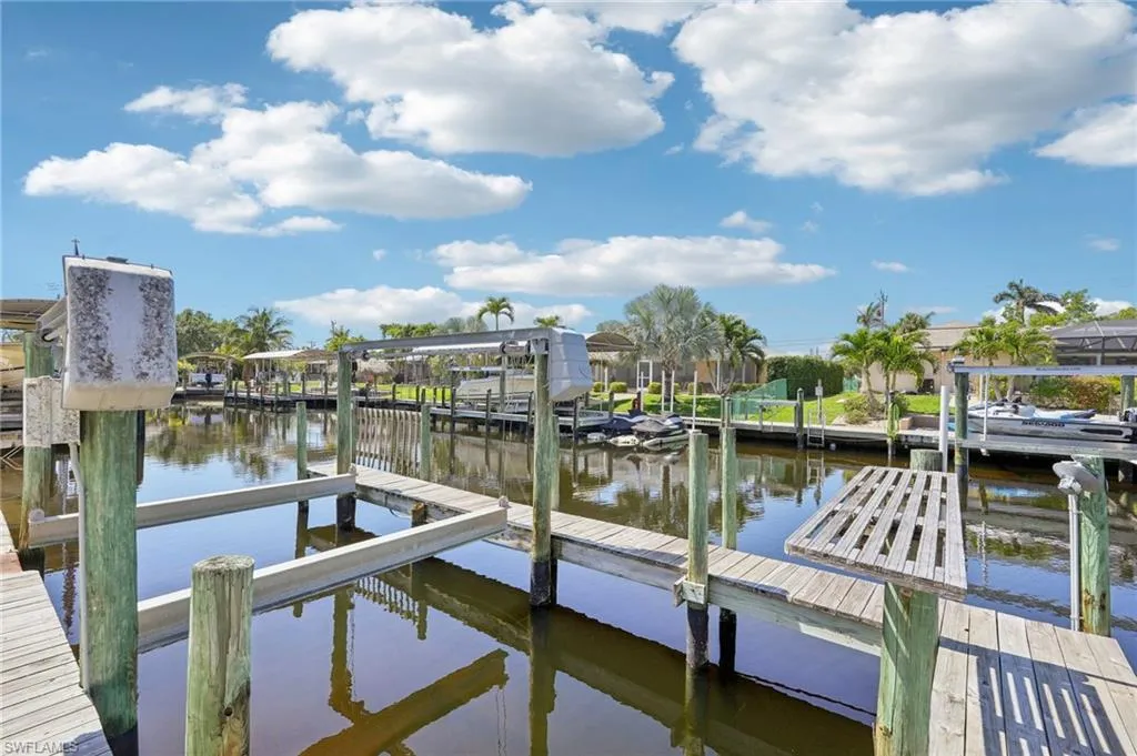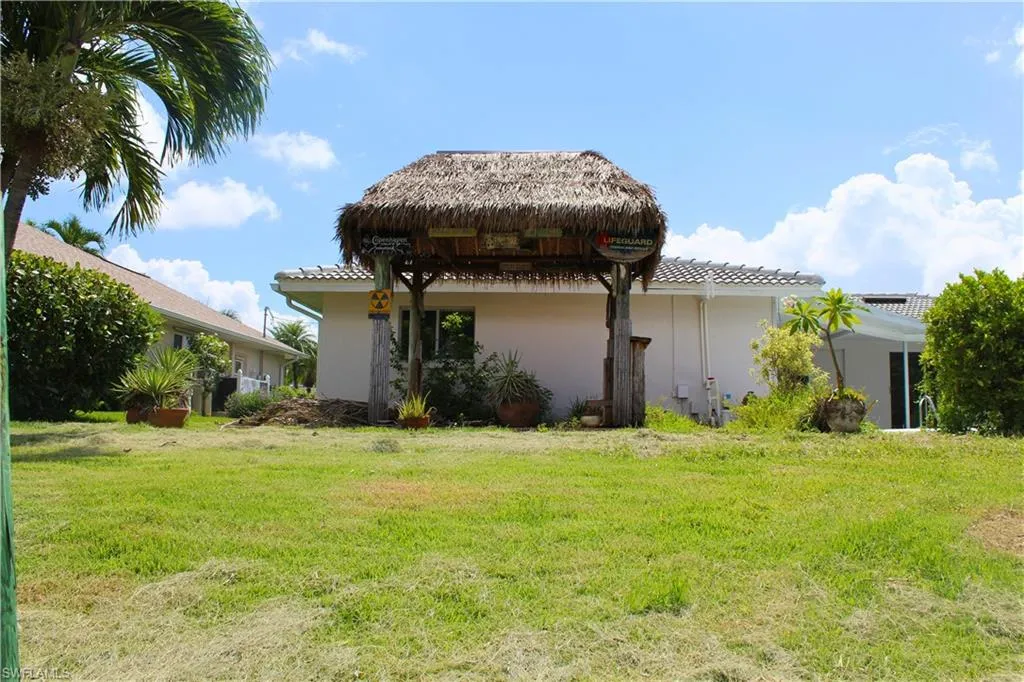 Stunning Waterfront Pool Home with Direct Gulf Access NO BRIDGES NO PROBLEMS! SELLER WILL PROVIDE $10,000 CREDIT TOWARDS WINDOWS AND DOORS + A $1,500 CREDIT TOWARDS WASHER AND DRYER SET! Welcome to your Florida paradise! 3 Beds – 2 Baths – 2,087 sq ft! Nestled in a highly sought-after Cape Coral boating community, this beautifully updated 3-bedroom, 2-bathroom home offers over 2,000 sq ft of inviting living space. With direct deepwater, no-bridge access to the Caloosahatchee River and Open Gulf waters, this residence is a boater’s dream. Step inside to a bright, thoughtful split-floorplan home with a formal foyer leading to a spacious great room and dining area complete with a built-in bar for entertaining. The upgraded kitchen features Top of the Line Stainless Frigidaire Gallery Line appliances with Real Granite Stone, and Solid Custom Wood cabinetry throughout—perfect for entertaining or daily life. Retreat to the primary suite featuring a walk-in closet, dedicated ensuite and private lanai/pool access. Outside, enjoy your private oasis: a large Concrete Inground Pool, Expansive sun deck, Tiki hut with brand new roof, lush tropical landscaping, private boat lift, and solid seawall with extended fishing pier—ideal for fishing, lounging, or launching your boat. Recent Major Upgrades include a 2-year-old tile roof, up to date plumbing and electrical systems, newer pool equipment, new garage door, Waterproof Pergo flooring, and solid recently Serviced HVAC. Everything is move-in ready—just bring your boat and soak up the Florida lifestyle. SELLER WILL PROVIDE $10,000 CREDIT TOWARDS WINDOWS AND EXTERIOR DOORS + A $1,500 CREDIT TOWARDS WASHER AND DRYER SET!