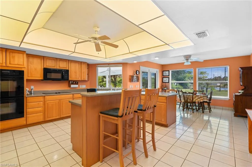 Inside, the thoughtfully designed split-bedroom floor plan balances comfort and functionality, featuring not one but two spacious living areas—ideal for relaxation, entertainment, or multi-generational living. The inviting main living space showcases vaulted ceilings, built-in cabinets, a cozy fireplace, and large windows that fill the home with natural light. The well-appointed kitchen boasts a double oven, cooktop, dishwasher, microwave, refrigerator, pantry, and a seamless flow into multiple dining spaces, including a breakfast bar, eat-in kitchen, and formal dining area—perfect for hosting gatherings or enjoying quiet meals at home.