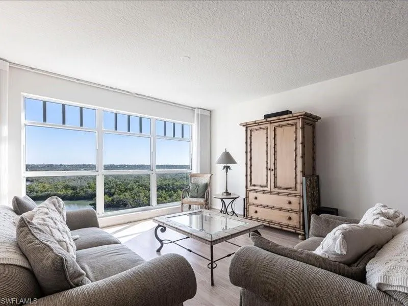 From the moment the elevator whisks you to the pristine Gulf-facing common terrace, you feel the serenity in the air. Barefoot Beach Club condos are the understated elegance indicative of Bonita Springs coastal lifestyle. Opening the front door will immediately take your breath away as it opens to a beautiful view of the south end of Little Hickory Bay. The kitchen is a stunner with Viking appliances, upgraded lighting, a beverage fridge, a built-in wine rack, granite countertops, and custom cabinets featuring glass doors in the dining/living area. New AC installed in 2023. The primary bedroom, facing Northeast, is the perfect spot to start every day with the sun gently climbing the mangroves and end the evenings watching the pelicans fly in for the night under the pink sky. Bedrooms 2 and 3 have ample closet space. Bedroom three works well as a den and has a lovely view of the private beach club with the Naples Gulf coastline in the backdrop. SKIP THE 4 – 5 YEAR WAITLIST AT THE CLUB AT BAREFOOT BEACH. Ownership of the condo comes with the option to join the club upon approval.