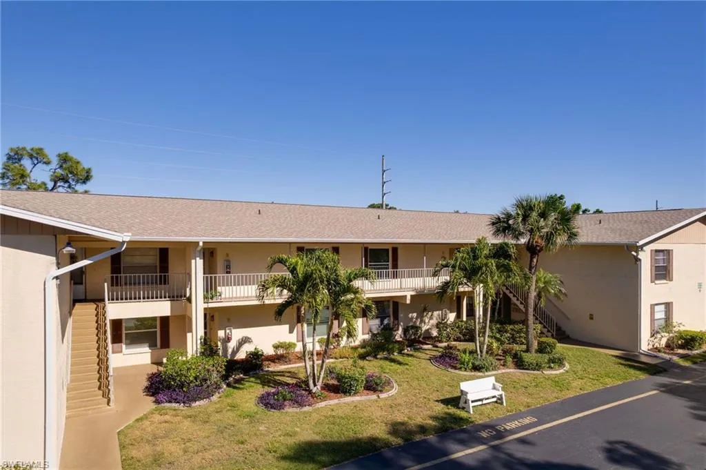 2 Bedroom 2 Bath 2nd floor condo is being offered fully furnished. A/C was recently replaced in 2023 and a new roof was put on in 2025. Enjoy views of the community pool from your private screened lani. This community is pet friendly & comes with a single covered carport. Low HOA dues of $399 per month includes insurance, lawn care, water, pest control. Close proimty to shopping restaurants, and just a short drive to downtown Fort Myers.