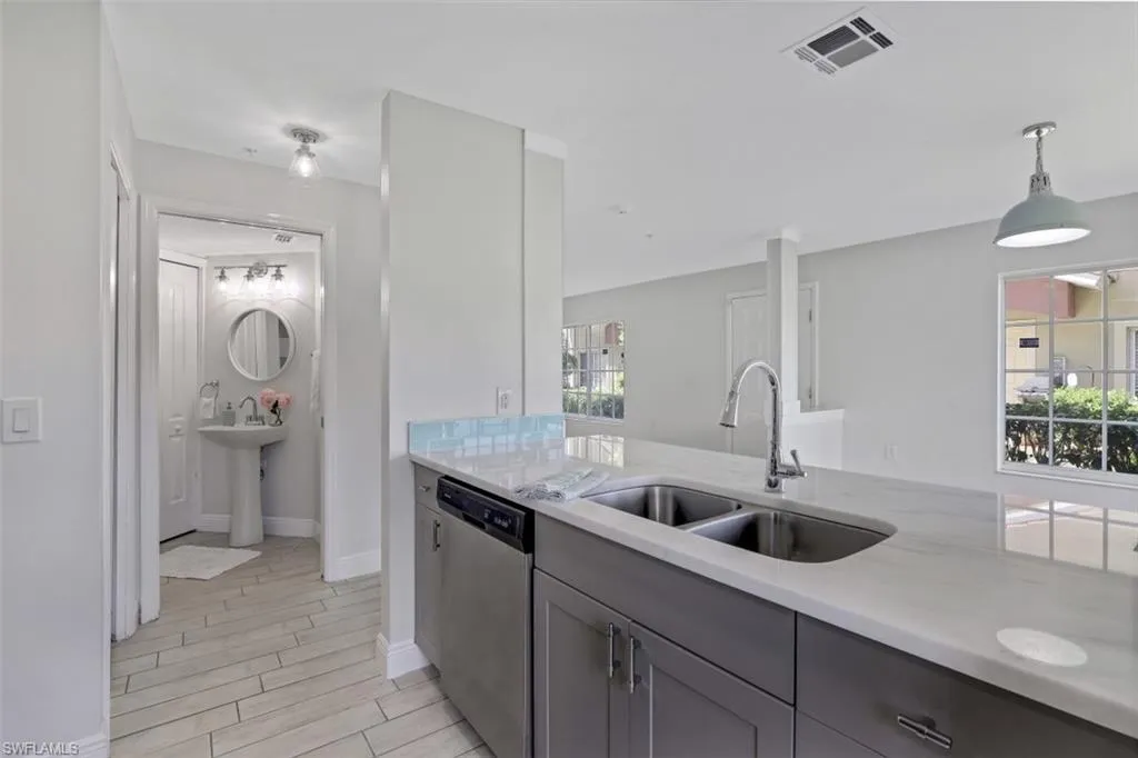 This move-in ready 3 bedroom, 2.5 bath townhome was remodeled in 2020 and features wood look tile that shines throughout the open floor plan and sets off the gray walls and white baseboards. The kitchen features gray shaker cabinets, with soft close cabinets & drawers, sleek cabinet pulls, white MARBLE countertops, light blue subway tile backsplash, pull down faucet, and separate pantry. All 3 bedrooms are on the second floor, along with the two full baths. There is laundry in-unit. Mechanicals are up to date with a new AC & new hot water heater in 2020 & a brand NEW ROOF in 2024. Enjoy the lovely landscaped grounds and your pond view. This gated community features a pool and playground. Located in Gateway (CDD), one of Southwest Florida’s premier communities, with miles of shaded biking trails and parks. Very close to Publix, JetBlue Park, RSW International Airport, and I-75. The unit has come out unscathed from all hurricanes during current ownership (2020 – present).
