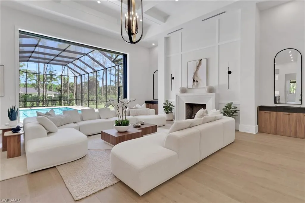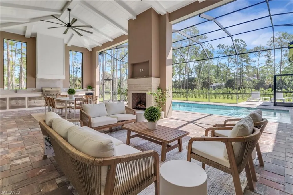 PRICED BELOW APPRAISAL & FULLY FURNISHED – Rarely available on one of the best streets in Logan Woods, this estate rests on nearly 3 acres with a unique lot design in a peaceful end location. Logan Woods is one of Naples’ most desirable neighborhoods, loved for its quiet charm and no HOA restrictions—all while being just 10 minutes to I-75, Physician’s Regional Hospital, Mercato, Seed to Table, fine dining, and Naples’ world-famous beaches. Inside, enjoy soaring ceilings, wood-look porcelain tile, and a chef’s kitchen with custom two-tone cabinetry, premium appliances, gas range, and walk-in pantry. The primary suite is a spa-inspired retreat with direct pool access, while each additional room features an en-suite bath and walk-in closet. Outdoors, the screened lanai with vaulted ceilings, summer kitchen, fireplace, and sparkling pool delivers the ultimate Florida lifestyle. A one-of-a-kind blend of privacy, furnished elegance, and exceptional value in a top-rated school district.