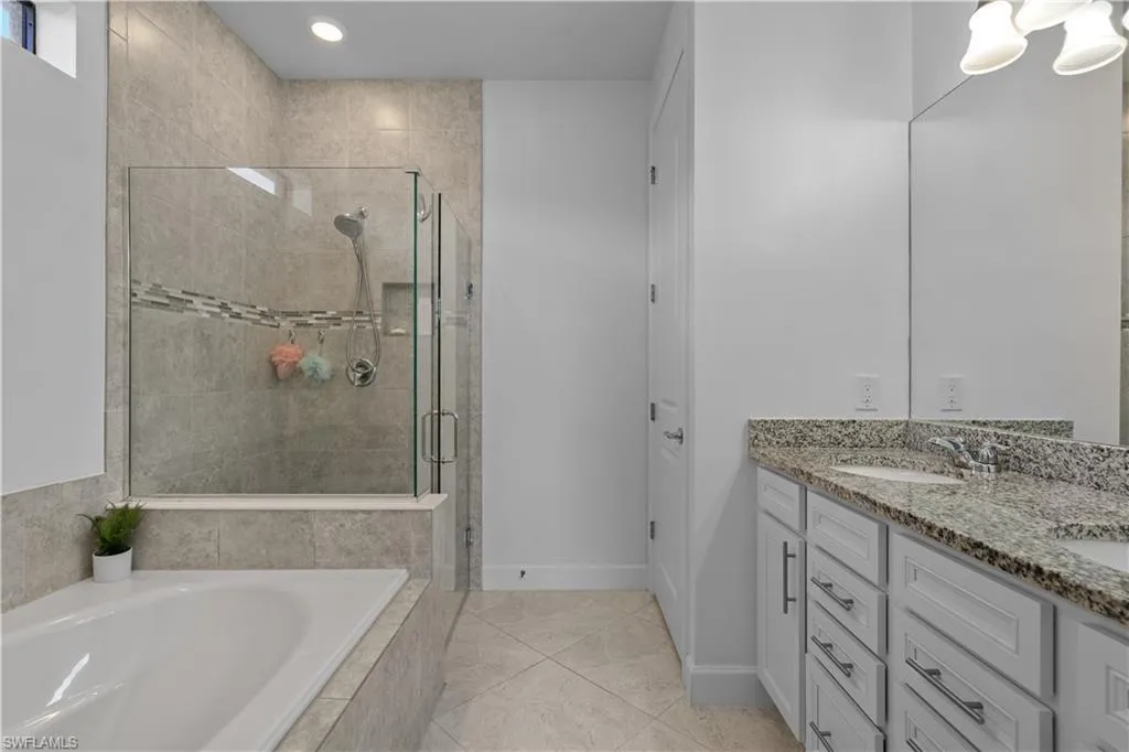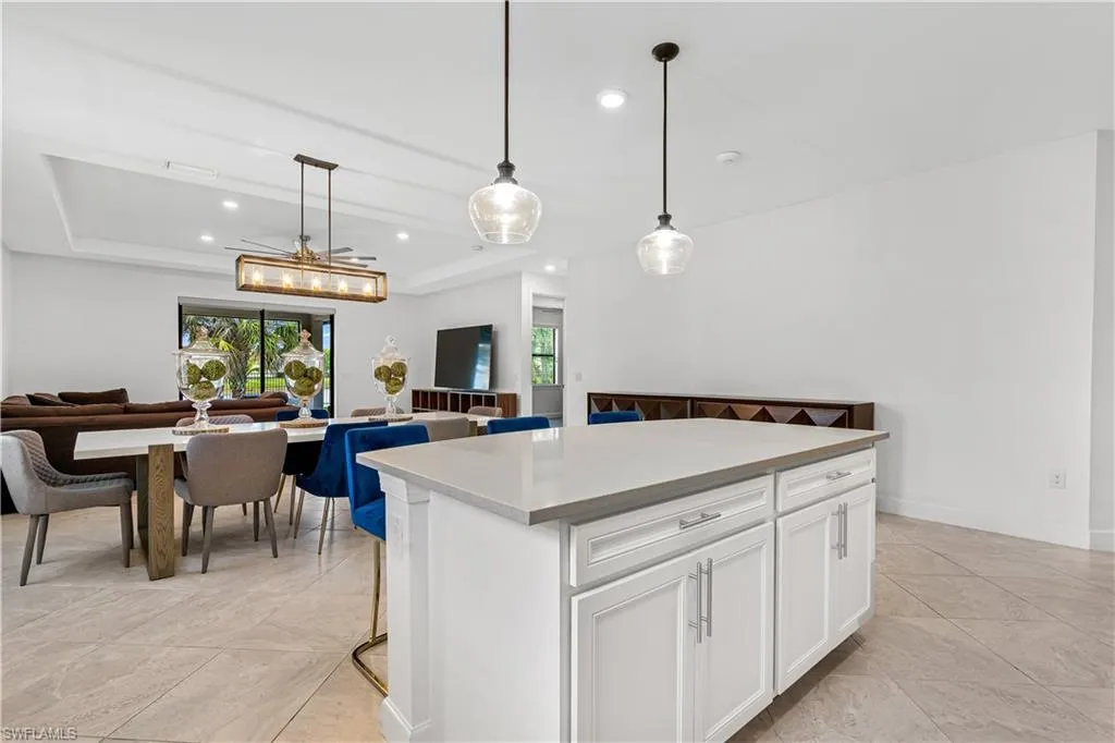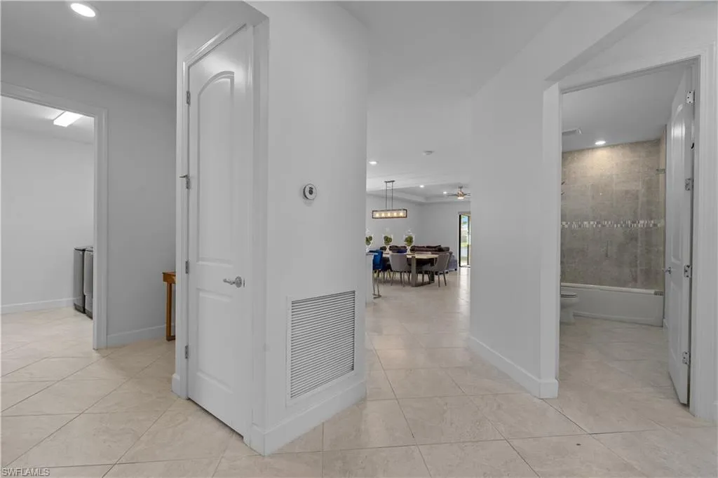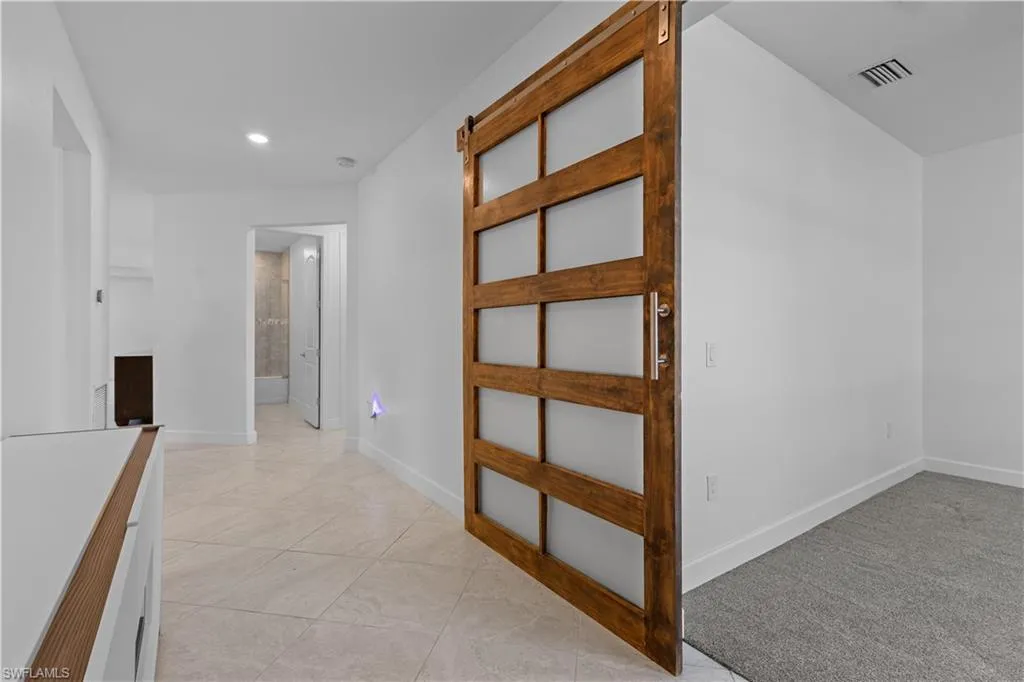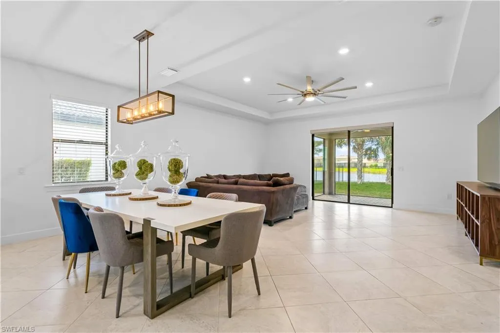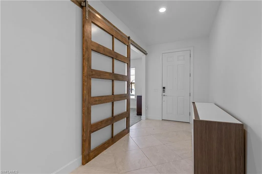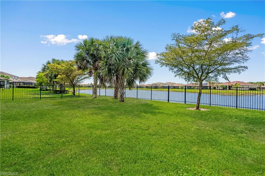 Welcome to Hampton Lakes at River Hall. This stunning lake front Oasis model built by Pulte Homes in 2018 offers one of the best layouts in the community. With 3 bedrooms + den, 2 bathrooms, over 2,100 square feet of living space, and a bright & open floor plan, this home lives very comfortably. Builder upgrades throughout include 20”x20” diagonally laid tile through the living space, quartz countertops, 42” tall upper cabinets, pull out drawers in the base kitchen cabinets, Whirlpool stainless steel appliances, 8’ tall doors throughout, laundry room cabinets & sink, tray ceilings, dual sinks, soaking tub, and a walk-in shower in the master bathroom, and so much more. Owner upgrades include brand new paint throughout (2025), high end window treatments with automatic blind for the sliding glass door, an extended and screened in lanai area, a fenced in backyard, glass shower enclosures in both bathrooms, a large and stylish barn door for the den, and an upgraded washer & dryer. Situated on a great NW exposed lot with stunning lake views you’ll enjoy daily sunsets without the blaring direct evening sun. This home offers access to the amazing amenities at the Town Hall community center which include an expansive resort style pool, pickleball, tennis, a large fitness center, bocce, a hobby room, game room, and a fenced playground. With LOW HOA fees and all this community has to offer, Hampton Lakes is perfect for families and seasonal residents alike. The community is conveniently located just minutes from River Hall Elementary School, I-75, RSW International Airport, tons of shopping, dining, entertainment, golf courses, waterfront marinas, and downtown Fort Myers & the river district. Very well kept and move in ready this home is one of the best offerings on the market today.