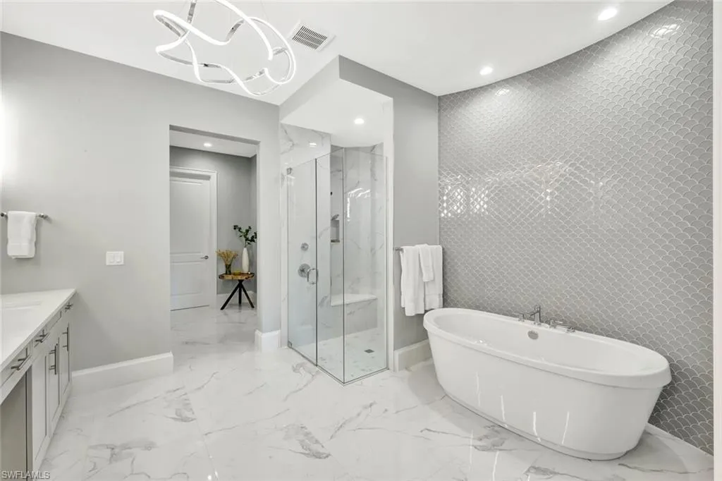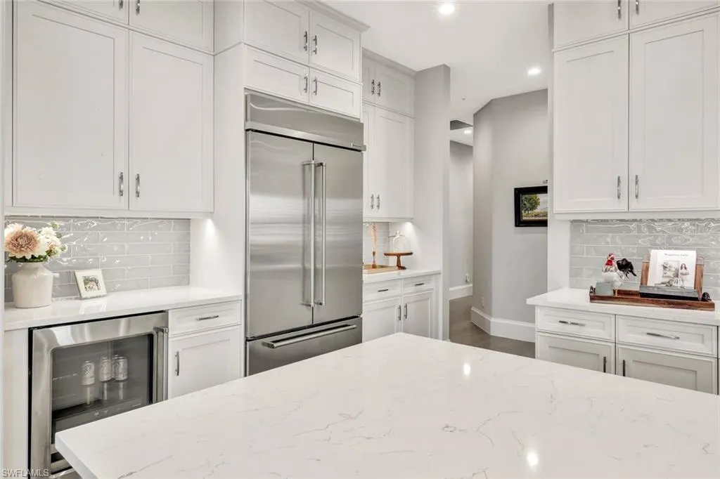 Welcome to luxury living in Talis Park located in the heart of Naples! This stunning first floor coach home (Messina Model) offers a little over 2500 square feet and boasts 3 bedrooms, 3.5 bathrooms, and a 2-car garage with all the upgrades you could dream of. Not only is each guest bedroom spacious, but they are also ensuites which is perfect for out-of-town guests. The stainless-steel appliances and gas cooktop in the kitchen are perfect for any home chef, while the 8′ solid core 2 panel interior doors and crown molding throughout add an elegant touch to every room. The newer air conditioner with germicide light ensures a comfortable and healthy living environment year-round. Step outside to the outdoor kitchen with a new tile backsplash, perfect for entertaining guests on warm Florida evenings. The private screened lanai features marble flooring, creating a seamless transition from indoor to outdoor living. The garage is equipped with a lift for your golf cart, as well as extra shelving and a storage closet for all your organizational needs. This condo truly has it all, combining luxury and functionality in one beautiful package. Talis Park’s newly renovated golf course and driving range was designed by Greg Norman and Pete Dye and is ranked by Golf Digest as one of Florida’s top 20 courses. A Short bike ride or golf cart drive to the clubhouse (voted Clubhouse of the year 2016 by Golf Inc. Magazine!) includes Core Fitness Center, Esprit Spa, Fiona’s Market Café, a resort style pool, and formal or casual dining in the award-winning restaurant. The community Sports Complex has 5 tennis courts, 4 pickleball courts, bocce, lap pool, and a dog park. A Sports Membership purchase is required. Don’t miss your chance to own a piece of paradise in Talis Park, where every day feels like a vacation.