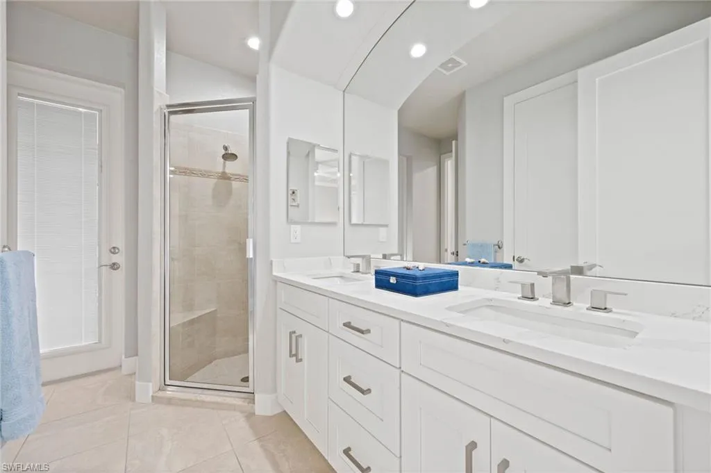 appointed touches including newly upgraded solid core interior doors and trim throughout. All Impact Windows and Doors. Brand new A/C and air handler (2024) in primary suite. New tile roof installed in 2023. Beautiful outdoor Kitchen with TEC Infrared Grill. Oversized 3-car garage with automatic locking impact doors and wired for EV charging station. 24/7 monitored security system with remote video access. Full upgrade list available. Flood Insurance is transferable. Indulge in panoramic views from the brand-new multi-level hurricane-rated pool enclosure with picture window screens. The composite dock leads to a 17,000 lb. primary boat lift with 35 ft canopy cover and 30 AMP shore power receptacle, in addition to a 10,000 lb. auxiliary lift for jet skis or 2nd