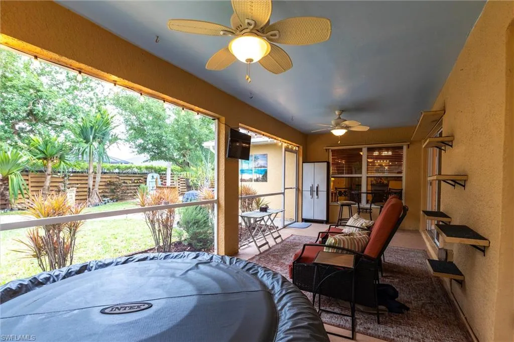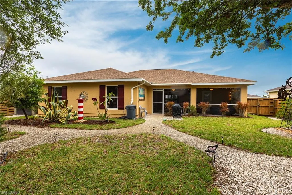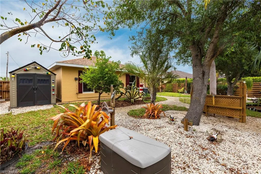 Buyers Loss, Your Gain. Buyer could not get the loan and Price is Reduced! Experience Your Backyard Oasis Filled with Nature, Beautiful Landscaping and Serenity! This is a Well Maintained 3 Bed, Plus Den and 2 Bath Home with 1574 Sq Ft of Living Space. The Back Lanai has Lovely Lighting, a Portable 2-Person Hot Tub with Heatpump, Filter and Bubbler and TV to Enjoy the Evenings and Overlook the Amazing Lighted Landscaping with a Custom Privacy Fence, all Perfect for Entertaining. There is a 10×10 Outdoor Storage Shed for anything you need to store in addition to the Workbench, Storage Cabinets, Pegboard Expoy Floors and Pull-Down Attic Stairs in the Garage. Roof Replaced in 2023, AC with Heat Assist in 2023, Whole House R/O Water Treatment System, Dishwasher, 2022, HWH in 2025, New Water Pump 2025. Like Cooking with Gas? There is a Propane Cooktop and Range with 80 lb Propane Gas Outdoor Tanks. All Appliances are SS and Microwave is Vented to the Outside. Granite Countertops and Backsplash. Exterior Painted in 2021 and Interior in 2024. Attic Insulation Replaced in 2022. Entire Home has 20×20 Diagonal Floor Tiles (NO CARPET). All Bedrooms have Crown Molding. The Primary Bath has been Beautifully Removeled with a 4’x5′ Tiled Shower and Walk-In Closet. All Furnishings in the Home will be Included.