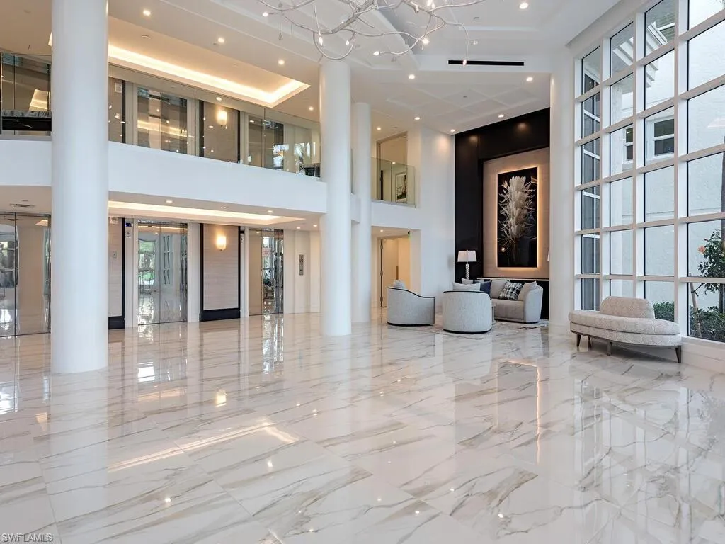 This light and bright Contessa “03” exemplifies the renowned status of The Contessa Tower, located directly on the sand in Beachfront Bay Colony, offering endless, completely private, unobstructed celadon floor-to-ceiling Gulf vistas. This innovative Great Room plan includes 2 bedrooms + den/or 3rd bedroom, and 3 full baths, plus pool-side cabana, too! Dramatic floor-to-ceiling window walls showcase stunning Gulf views from every room. Enjoy the 52-foot Gulf-Front screened main lanai, accessible from all primary living areas, along with an additional open-air Gulf-Front lanai at the guest bedroom. Updates include stainless steel Monogram wall oven and microwave, induction smooth-top range, custom built-in stainless-steel refrigerator, and LG full-size washer and dryer with pedestal bases. Contessa is a full-service tower featuring 24-hour front desk personnel, full-time on-property manager, social gathering room, library, fitness center, 2 guest suites, and a private on-site Har-Tru tennis court, and 2 deeded under tower parking spaces. Enjoy the prestige of both Bay Colony and Pelican Bay’s World Class extensive menu of included membership privileges: 3 private Beachfront Dining Clubs located on 2½ miles of pristine sugar white sandy beach, attended Beachfront services, 3 active Tennis Clubs, miles of nature walking and bike paths, state-of-the-art Fitness, and Community Lifelong Learning and Wellness Center. Artis Center for Performing Arts, Mercato, and Waterside Shops all just steps away.