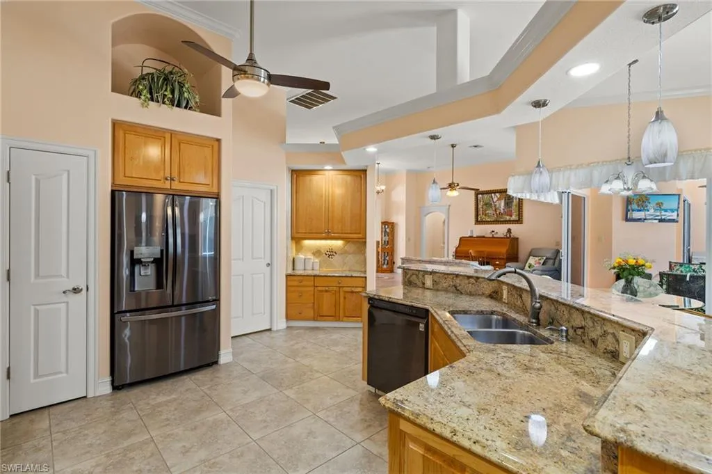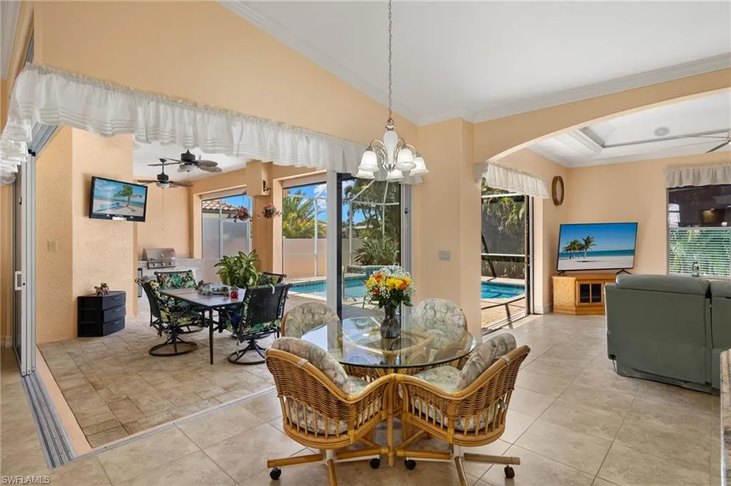 Enduring quality and elevated living. A distinctive residence of exceptional merit and elegance, located in Cape Coral’s premier enclave. Southwest Cape Coral is commonly viewed as the most desirable area of our beautiful city, and in this case, it sits within the most secluded and sought after area WITHIN that already exclusive location. This resplendent home offers a harmonious blend of refinement and functionality. From the moment you enter, the residence unveils a sense of understated opulence, enriched by enhancements and architectural nuance. Value. That is what comes to mind. In this current market, discerning Buyers require a move-in ready, defect-free well-maintained home loaded with upgrades, features, space, security, luxury, and located in the best area. Your new home hits all of the marks. At the heart of the home lies an expansive culinary sanctuary with an “open concept” chef’s kitchen that includes views of your living space and heated pool. Your kitchen features stainless steel appliances, solid wood cabinetry (which is a theme through the entire home), an abundance of surface area on granite countertops with accenting tiled backsplash, all designed to accommodate convivial gatherings with ease. The 3 car garage allows ample room for your vehicles and toys. Step into the spa-inspired Owner’s Bath featuring a luxurious tiled walk-in shower and soaking tub-a retreat fashioned for tranquility and indulgence. The heated pool is where you will find South Florida living bliss. Relax to the sound of your waterfall, while being surrounded by mature native palm trees, providing a true private oasis. Here are more highlight features and upgrades to consider: Bahama shutters on all windows, accordion shutters on the lanai, outdoor kitchen, full 3 car garage with epoxy floors, attached exterior storage shed, automated sprinkler system, new appliances, granite countertops in all bathrooms with solid wood vanities, LED lighting throughout, crown molding, home wired for sound, mounted TV’s, new lanai pavers, tinted windows and sliders, new metal roof under warranty, lighting under kitchen cabinets and tray ceiling in family room, wood floors in all bedrooms, high end tile everywhere else, pull-out shelves in kitchen, new AC, stunning 90° sliders, and ALL ASSESSMENTS ARE PAID. This home is positioned among multi-million-dollar waterfront estates, yet you will find this residence to be more affordable, and without all of the costs and concerns of waterfront living. Boating will never be a problem, as there are several boat ramps nearby as well as shops, restaurants, bike paths, pickleball, and so much more. Schedule your private showing today. Every corner of this home has been curated with intention and intrinsic value. This is not merely a residence-it is a wise acquisition for the particular Buyer. The asking price reflects the features and lifestyle it affords-one of comfort, class, and long-term satisfaction. 1 year home warranty included.
