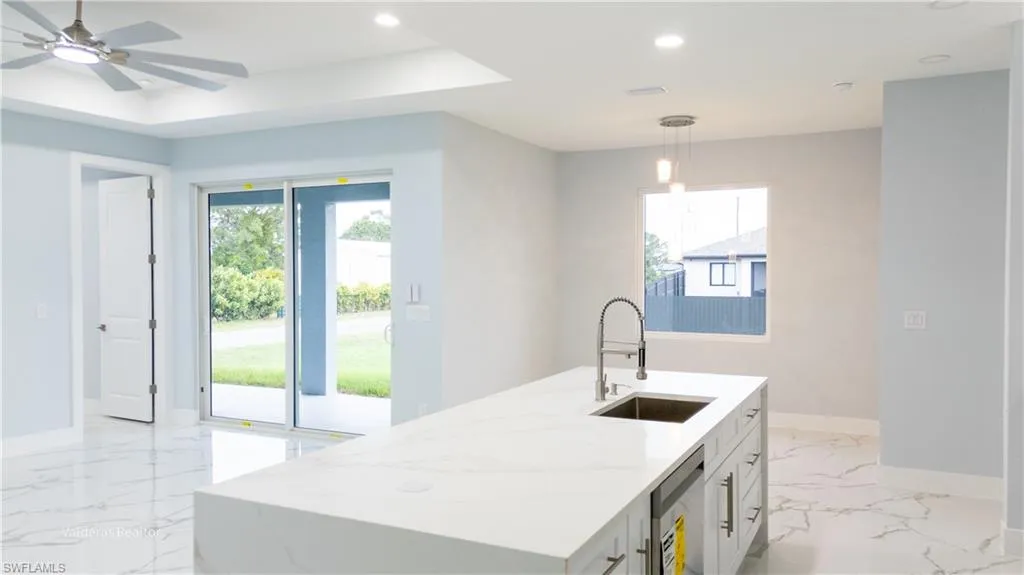 OFFERING CONCESSIONS FOR CLOSING COSTS!!!Welcome to your dream home in Lehigh Acres! This stunning single-family home boasts 3 bedrooms, 2 bathrooms, Office and a 2-car garage, perfect for a growing family or those who love to entertain. The office space is ideal for those who work from home or need a quiet place to study. The modern kitchen features granite counters, stainless steel appliances, and tile flooring, making it a chef’s paradise. Situated on a corner lot, this home offers a desirable location close to schools and shopping centers, making errands a breeze. The large space for a pool is perfect for those hot Florida days, where you can relax and unwind in your own backyard oasis. The detailed construction of this home ensures quality and durability, giving you peace of mind for years to come. Don’t miss out on the opportunity to own this beautiful home with all the modern features you desire. Come see it for yourself and make this house your forever home!