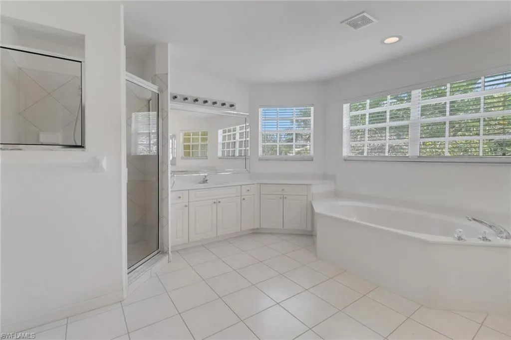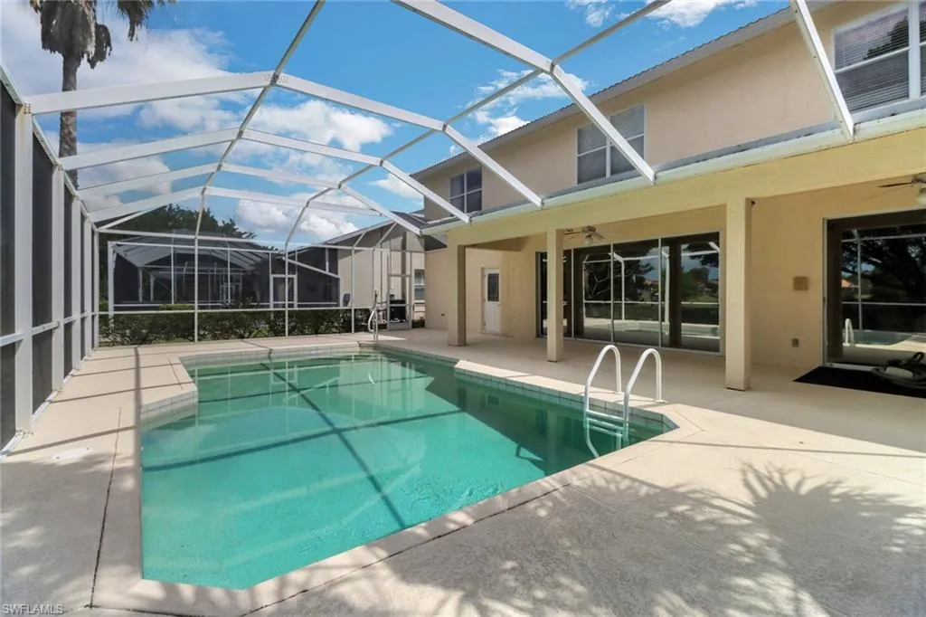 Price Improvement! New tile roof and pool heater install scheduled for November 2025. Discover an exceptional opportunity to own a spacious residence in Heritage Greens, offering golf course views without the membership fees. Perfectly positioned in North Naples, this home combines spectacular lake and fairway vistas of the Arrowhead Golf Course, a public course, with a convenient location close to shopping, dining, and amenities at Logan’s Landing and Founder’s Square.
