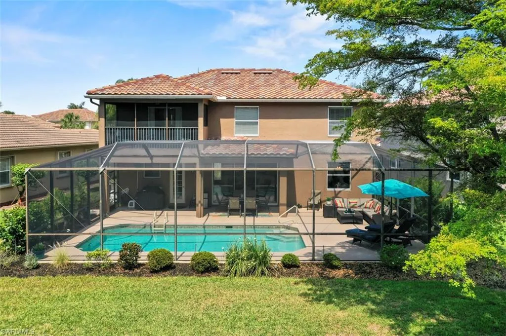 Step outside to an oversized lanai with southeast views, a heated saltwater pool, and landscape lighting that creates a magical evening atmosphere. Upstairs, the primary suite offers its own private lanai — a serene spot for coffee or evening relaxation.