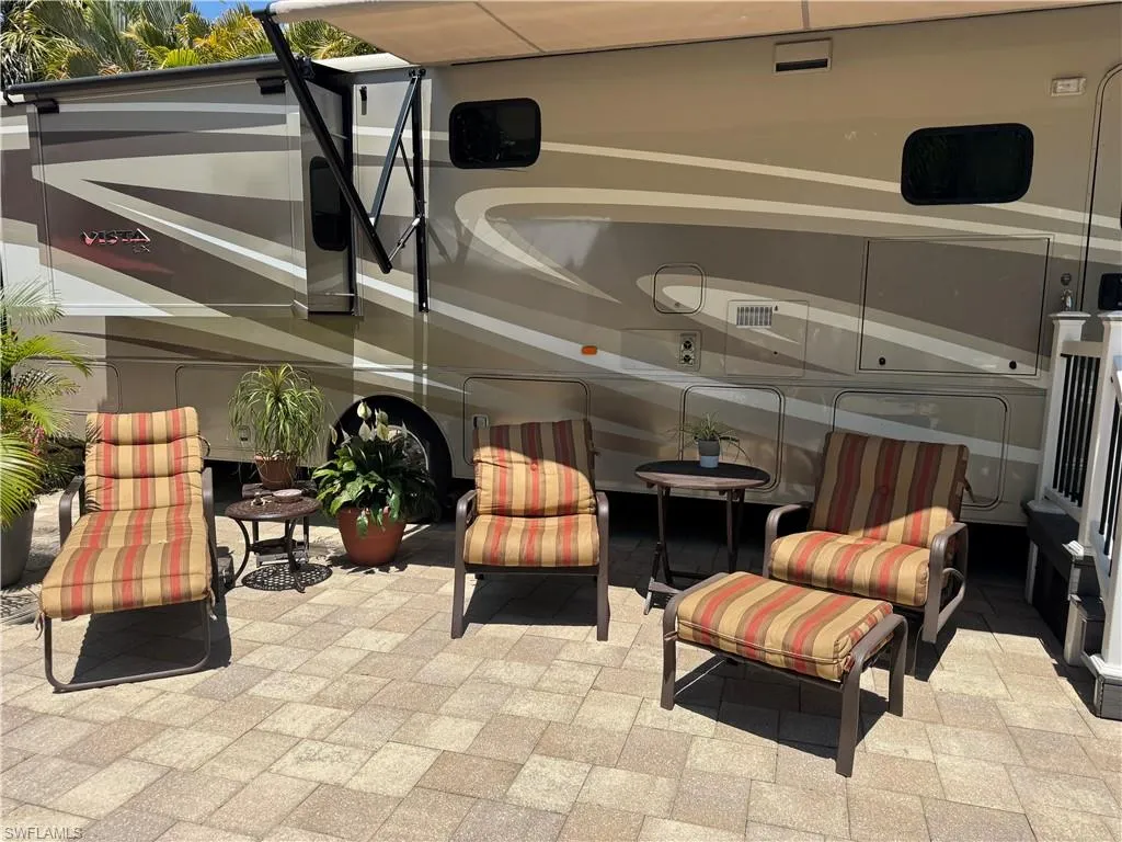 Lot 209 An Outdoor Paradise Awaits You. Welcome to Lot 209, a true gem that captivates from the moment you arrive. This one of a kind property is a haven for outdoor living, with expansive spaces designed to maximize comfort and charm. Whether you’re hosting lively gatherings or enjoying quiet moments under the stars, the thoughtfully designed outdoor areas make every moment unforgettable. For those who love to grill, Lot 209 is a dream come true! This is griller’s delight, equipped with appliances that make it easy to whip up delicious meals while savoring the fresh air and lush surroundings. Whether you’re searing steaks or flipping burgers, this space is perfect for culinary creativity and entertaining guests. Imagine yourself lounging amidst lush tropical and exotic plants, a vibrant garden oasis that even the greenest thumbs dream of. With multiple seating areas, this property offers the perfect setting for morning coffee, afternoon relaxation, or evening cocktails. The expansive pavers provide a polished, functional flow that seamlessly connects each outdoor space. Three storage sheds keep everything neatly organized, and here’s the best part, this property comes TURN KEY! All outdoor furniture, a sofa, TVs, and more are included, making your transition into this tranquil escape as smooth as possible. The charming coach house adds a touch of whimsy with its scalloped canopies, offering a bright kitchenette, a bathroom with a spacious closet, and a cozy sitting space perfect for a reading nook or guest rom that no one will want to leave. Lot 209 is more than a property, it’s an experience. Grow plants, nurture friendships, and create lasting memories in a peaceful retreat that feels like your personal slice of paradise. Why RiverBend?