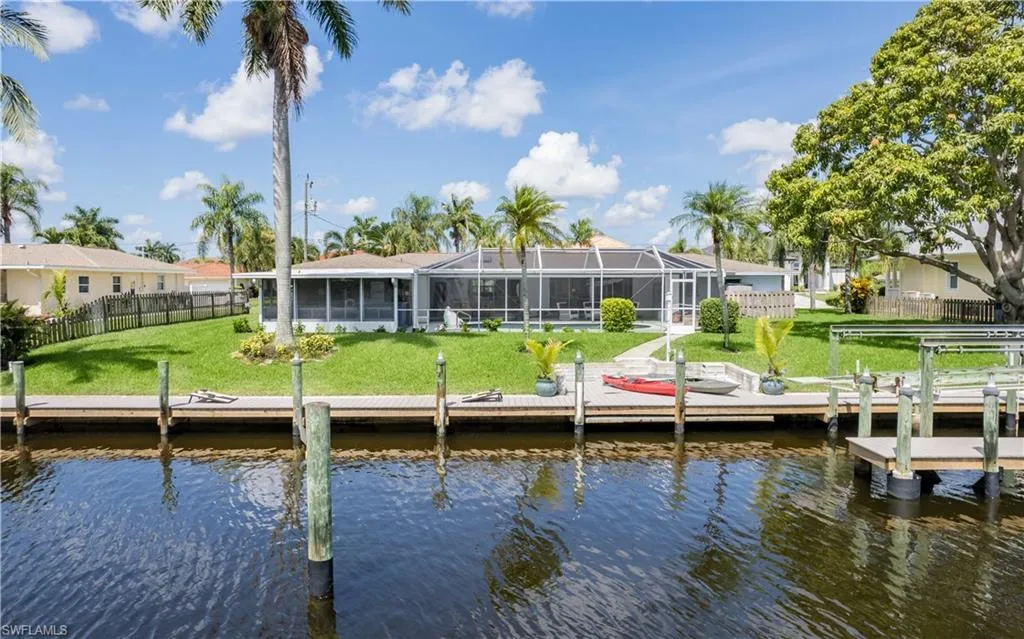*** PRIME LOCATION *** Introducing an extraordinary real estate opportunity in the highly sought-after southeast Cape Coral area. This stunning residence is situated on a rare oversized basin canal, just moments away from a relaxing boat ride to the Caloosahatchee River. The property spans an expansive triple lot, offering breathtaking water views and an impressive 120 feet of water frontage. Designed for those seeking an authentic Florida lifestyle, this home features three spacious bedrooms and three and a half bathrooms. The thoughtfully crafted floor plan promotes a seamless flow, making it perfect for both family living and entertaining guests. The outdoor living space is exceptional, featuring a beautiful pool deck and an outdoor bar area, complemented by an oversized yard that enhances your enjoyment of the Florida sunshine. Recent upgrades include a new dock, fresh interior and exterior paint, a new pool screen enclosure, a resurfaced pool, and a freshly painted pool deck, among numerous other enhancements. You truly must see this home in person to appreciate everything it has to offer. Don’t miss the opportunity to claim this unique property in the desirable Yacht Club neighborhood!