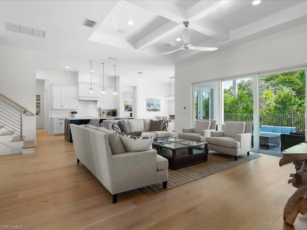 A Pristine Naple’s Builder MODEL HOME! HOUSE! CAR! BOAT! Move in today and experience the perfect blend of coastal elegance and modern comfort in this 4 bed, 3 bath, stunning, furnished pool home. Very TURNKEY including a car and a Freedom Boat Club membership. Step inside and be captivated by the gorgeous finishing touches, including plantation shutters throughout, a fantastic layout with thoughtfully designed first and second floors, and an abundance of closet space. The primary bedroom is a private retreat, offering ultimate relaxation with its en-suite bathroom. 2nd floor family room can be converted into a 5th bedroom. Enjoy peace of mind with impact windows and doors for security and protection, while the elevated first floor meets the latest building codes. Engineered wood floors flow seamlessly throughout the home, adding warmth and sophistication. Centrally located in the heart of the island, you’re within walking distance of Mackle Park, the Library, Historical Society, YMCA, and more. Enjoy the best of both worlds – a tranquil home just a mile away from the beautiful beach. 1 mile to EVERYTHING! This is more than a house; it’s a lifestyle.