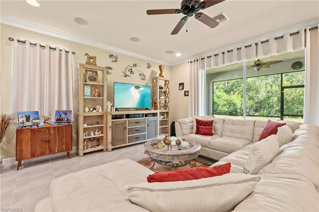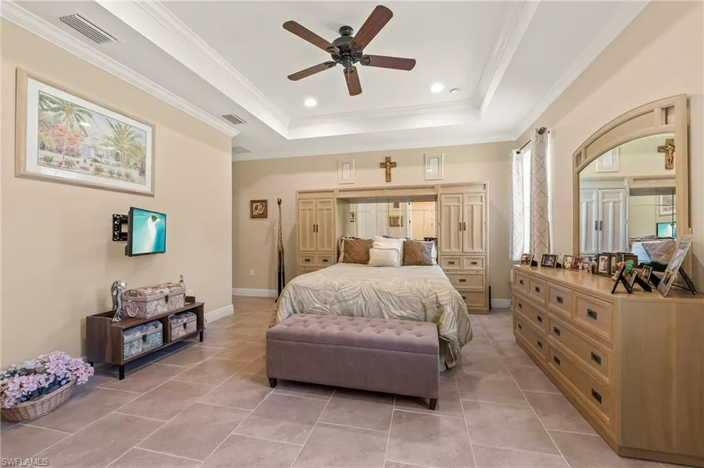 THREE-CAR GARAGE! REFRESHED PRICE! LOWEST PRICED LISTING IN COMPASS LANDING! BRING ALL OFFERS!Compass Landing is a private and secluded gated community, and this home features a DEEP OVERSIZED LOT sitting on .22 acres. This superior single-family home, with a West Indies elevation, is ready for a new homeowner! From the moment you enter this desired Augustine III model, you will appreciate the quality of workmanship and how meticulously maintained it is. The home opens up to coffer/tray ceilings in the foyer and den with double crown molding and recessed lighting, which has also been added to the kitchen, master bedroom, and great room. The gorgeous kitchen has been upgraded with 42″ cabinets, island shiplap, quartz counters, a walk-in pantry, and stainless steel Whirlpool appliances. No carpet! You will find plank tiles throughout. The owner’s suite boasts TWO walk-in closets; owner’s bath with dual sinks, quartz counter tops, and oversized walk-in shower. Both guest bedrooms also have walk-in closets, and the bathroom shower has been upgraded. In addition to extra ceiling storage on both sides of the garage, the laundry room has tons of extra storage and a laundry tub. Additional features include upgraded light fixtures and gutters, and downspouts, not part of the builder package. Compass Landing is a private and secluded gated community located in North Naples and minutes to I-75, Mercato, Waterside Shops, Gulf Beaches and zoned with “A” rated Collier County public schools. Residents enjoy a 2,600-sqft amenity center appointed with a resort-style pool, clubhouse, tot lot, and exercise room. Call to schedule your private showing today!