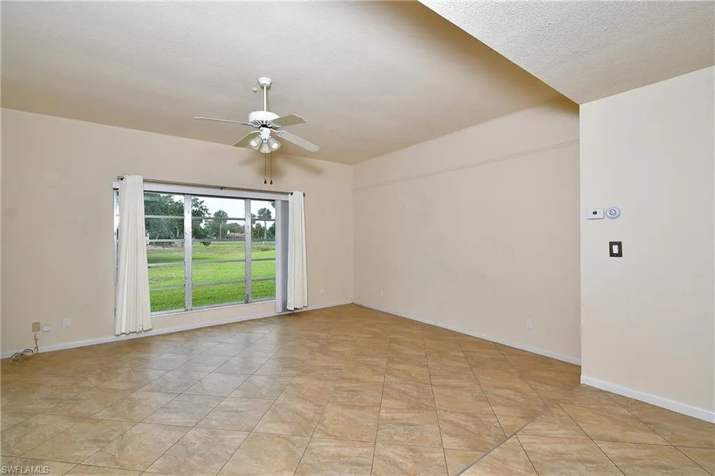 Welcome home to this spacious two bedroom, two bathroom condo in East Greens community in Lehigh Acres. Maintained and ready for you to move in! Updates include the roof (2021), HVAC (2023), water heater as well as tiled flooring throughout for easy cleaning. The kitchen features white cabinetry, stainless steel appliances, granite countertops and a nice large kitchen sink. Full size washer and dryer in the laundry room, as well as a large pantry/storage closet are located off the kitchen. Dining area and living room are nice and open with views of the Lehigh Resort Golf Club . Primary bedroom has 2 closets and views of the golf course as well. Second bedroom has plenty of light and a spacious closet. Both bathrooms feature tiled showers and updated vanities. Don’t miss out on this great condo today. East Greens Condo community is 55+ and located close to shops, restaurants, medical offices and more!