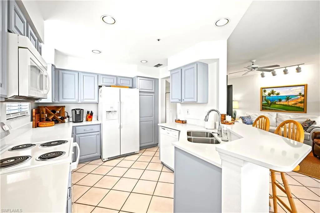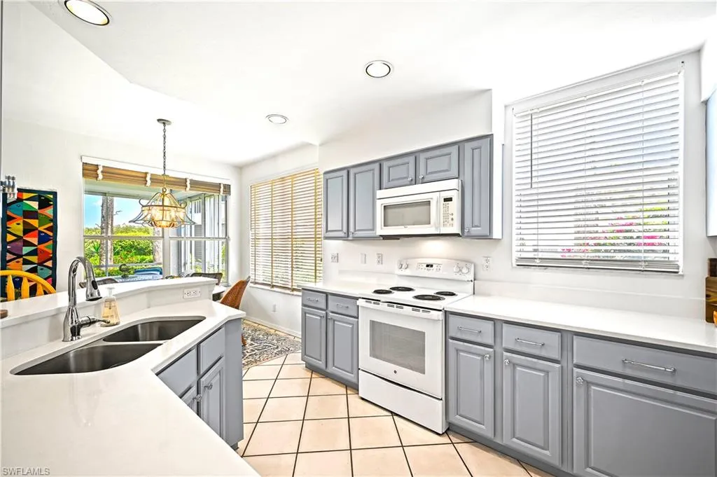 This unit is light and airy with great natural light soaking in from the lanai and large eastern windows. A unique benefit of being an END UNIT. And your main entrance in VERY PRIVATE with plenty of green space. The lanai faces north, with a LONG LAKE VIEW making it feel like you are ON THE WATER! AND, buy with confidence knowing that this unit experienced NO INTERIOR FLOODING during any of the hurricanes. The added ground elevation makes this unit valuable and desired for those looking for first floor living.