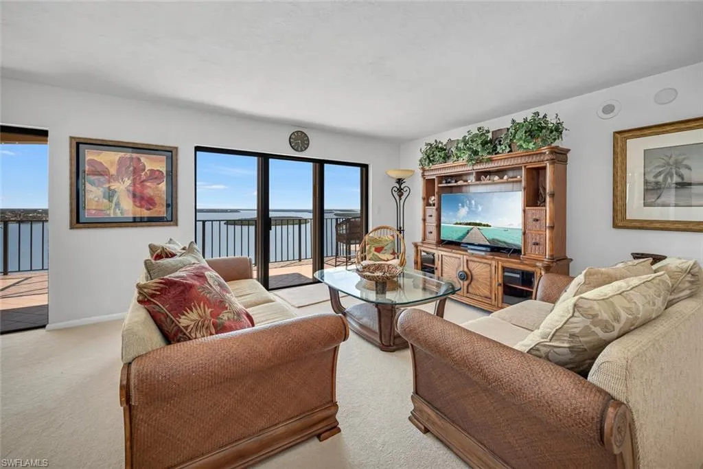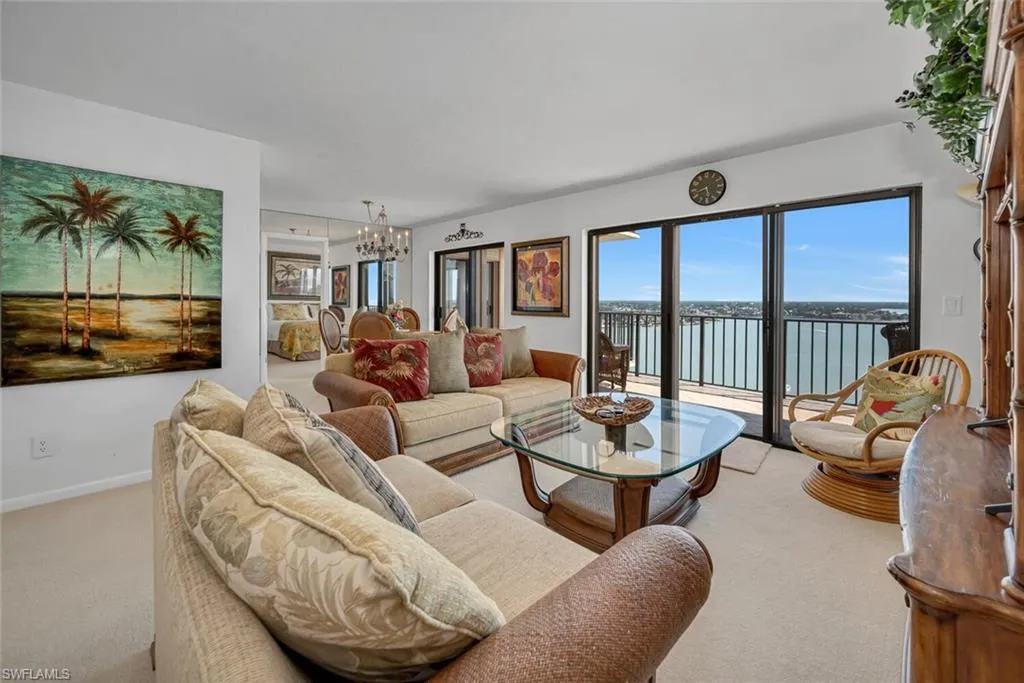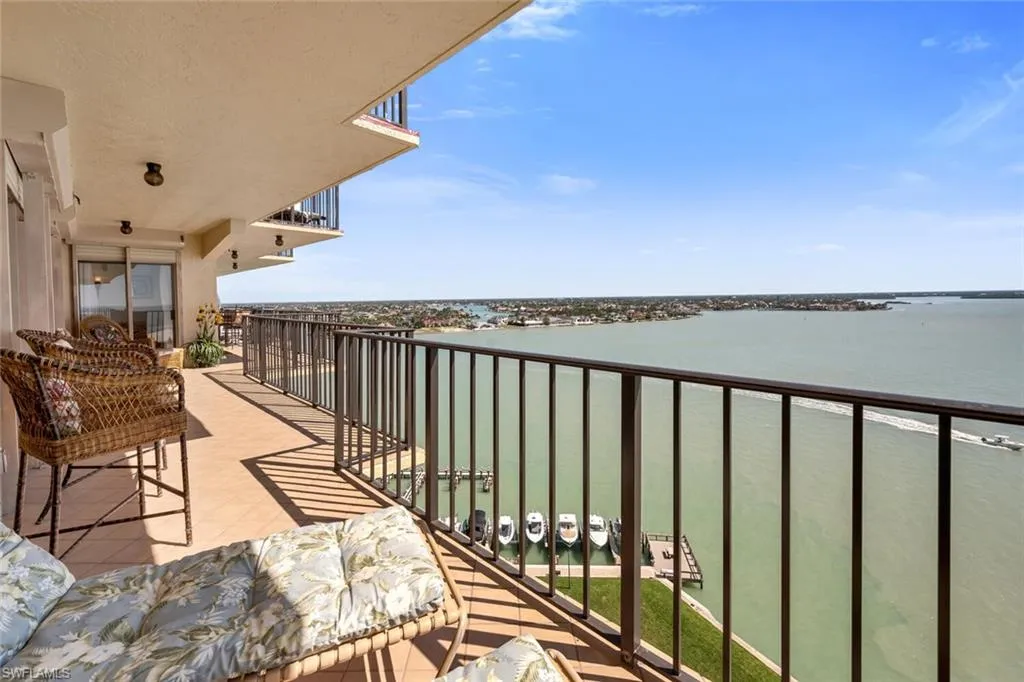 Welcome to Shipp’s Landing — Marco Island’s premier waterfront destination! This stunning 15th-floor residence in the highly desirable south-facing 24 stack offers breathtaking panoramic views of the Gulf of Mexico, Caxambas Pass, and the Ten Thousand Islands. Watch dolphins play and boats cruise by from your private, oversized balcony perched high above the sparkling waters. Step inside through the floor to ceiling glass doors and find a welcoming, turnkey-furnished home filled with warm, natural light and endless views. The extensive balcony, large living-dining area, and modern kitchen with considerable countertop and cabinet space make this home in the sky the perfect place for hosting your family and friends. The primary suite is a true retreat with balcony access, sweeping water views, and a large ensuite bathroom featuring a double vanity and walk-in shower. Guests will feel at home in the comfortable second bedroom with adjacent full guest bath. Additional features include in-home laundry room, a large storage closet off the hallway, and covered parking. Shipp’s Landing is a private community renowned for its resort-style amenities including three pools, a spa, a state-of-the-art fitness center, tennis and pickleball courts, boat docks, a private beach area with kayak launch and storage, fishing pier, bocce, shuffleboard, and clubhouses — all nestled along beautifully landscaped grounds. Whether you’re seeking a full-time residence, a seasonal getaway, or a smart investment opportunity, this residence offers the perfect blend of luxury, comfort, and unbeatable island lifestyle. Move-in ready and waiting for you to make it your own! Don’t miss this rare opportunity to own one of the best vantage points Marco Island has to offer. Schedule your private showing today! Estate sale.