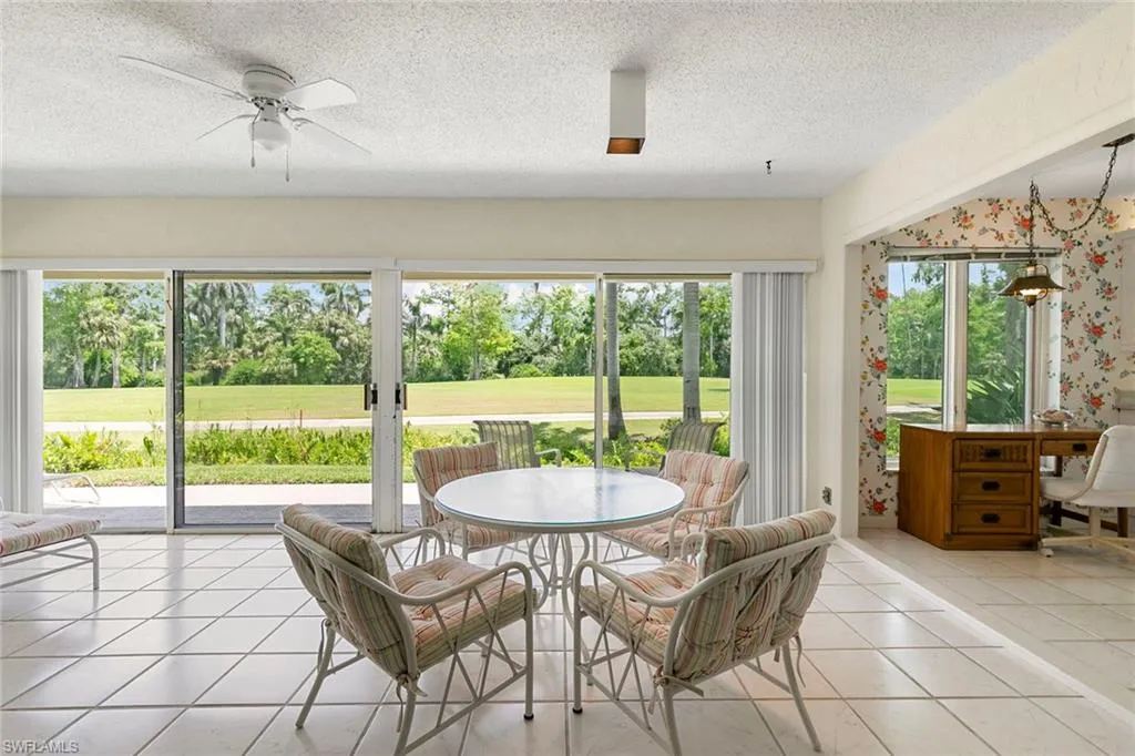 This first-floor end unit in Wilderness is prized for its size, location and natural light. Ideally positioned within one of Naples’ naturally stunning and centrally located communities and tucked behind the gates of Wilderness Country Club, this locals favorite is just over a mile from the beach and minutes from Old Naples. This residence offers a blend of privacy, lush surroundings and club lifestyle. Two walls of sliding glass doors frame serene golf and lake vistas and bring in the outdoors, making it an ideal retreat for those seeking easy living in a picturesque setting. The layout provides a ready-to-reimagine blank canvas: open the kitchen, update baths, and create your ideal Naples retreat while protecting long-term resale with one of the community’s sought-after layouts and an end-cap orientation. Included with the home are a golf cart and dedicated cart garage, adjacent to your covered parking space. Residents enjoy unlimited golf on an 18-hole Arthur Hills-designed course with no tee times, five pools, four tennis courts, croquet, bocce, a dog park, and a new five-star clubhouse and practice facility. Surrounded by 200 acres of forest and beautifully manicured landscaping, Wilderness offers the charm of Naples with the simplicity of a modern, maintenance-free lifestyle. It’s no wonder so many longtime Naples residents choose to call this hidden gem home and this is a floor plan worth renovating.