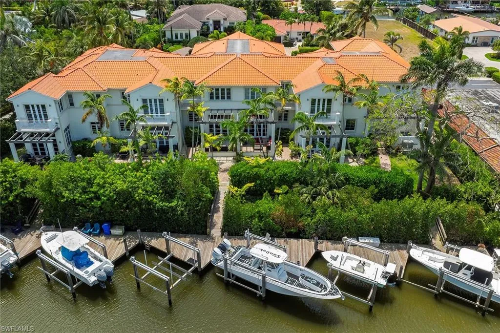 Experience the best of Naples waterfront living in this rarely available 2,200-square-foot, two-story townhouse-style condominium. Featuring three spacious bedrooms with en suites, this beautifully updated home is just steps from world-famous 5th Avenue’s fine dining, upscale shopping and renowned Naples Bay Resort. Renovated in 2022 just before Hurricane Ian, the property remained high and dry during the storm, according to the owner, and includes hurricane-impact windows and doors for added safety and comfort. Inside, enjoy 12-foot-high ceilings, abundant natural light, motorized blinds on the patio doors and plantation shutters on all other windows for a polished, luxurious finish. Boaters will love the 30-foot private dock with a 12,000-pound lift, providing deep water, direct Gulf access with no bridges. The home also includes a two-car garage and is pet-friendly. This home offers an unmatched combination of location, style and convenience. This is a must-see property for anyone seeking a prime waterfront lifestyle in the heart of Naples. Easy to show and competitively priced to sell so don’t miss your chance to own this exceptional residence.