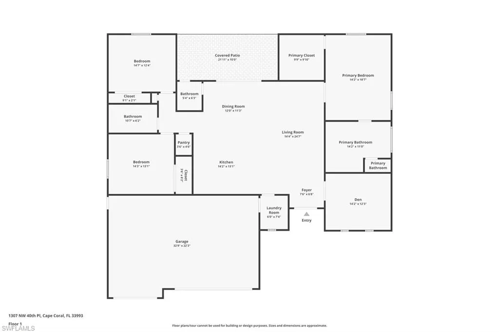 For convenience, an oversized three-car garage is provided, ample for parking and storage. A covered rear patio offers a tranquil poolside retreat, ideal for relaxation and entertaining.