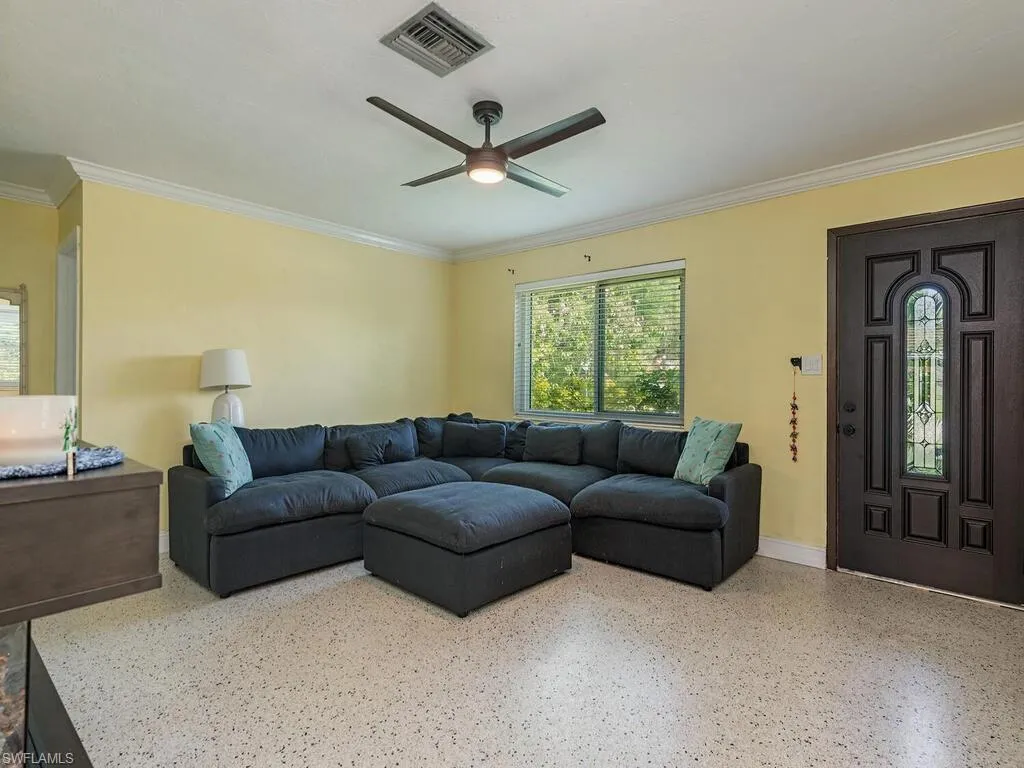 Single family home with generous backyard space located near Whiskey Creek and Edison Ford Estates. No HOA fees! Just a short drive to Downtown Fort Myers, Florida Southwestern College, and numerous dining and shopping options. New roof in 2019, and impact windows in nearly every opening in the home. From the back patio area, you have views of the spacious, peaceful back yard area with privacy wall, offering plenty of room for children, pets, or enjoying a quiet outdoor evening. Inside, the home has a spacious eat-in kitchen, and surprisingly large utility room with washer and dryer. Stainless appliances, light and bright kitchen cabinets. Beautiful back yard views from the den/flex room. Located very near large upscale waterfront homes.