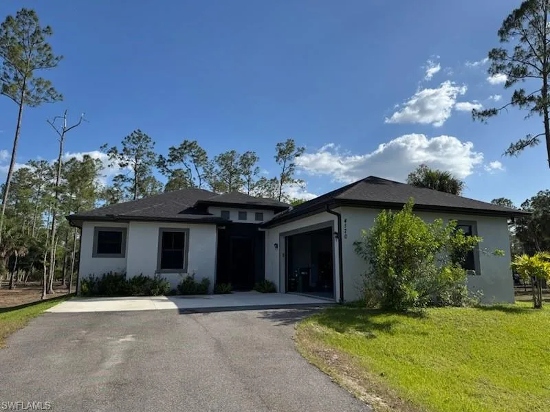 ***Friendly, cooperative listing agent wants to work with you and your buyers. Motivated sellers said “Bring all offers”.*** Your Dream Home Awaits – Modern Living on 1.14 Acres! Discover this beautifully crafted home set on 1.14 acres, offering approximately 1,550 square feet with 3 spacious bedrooms, a versatile den, 2 full bathrooms, and a 2-car garage, this home combines comfort, functionality, and style. Step inside to elegant 24×24 porcelain tile flooring throughout—including the entryway, lanai, and continuing seamlessly into the shower walls and bathtub surrounds. The kitchen is a chef’s delight, featuring solid wood cabinetry, granite countertops, a full backsplash, and sleek stainless steel appliances. Additional upscale touches include crown molding in the main living area and primary bedroom, as well as impact-resistant doors and windows for peace of mind. Outside, you’ll find an asphalt driveway leading to a shingle tile roof, full gutter system, and a sprinkler system for easy lawn maintenance.