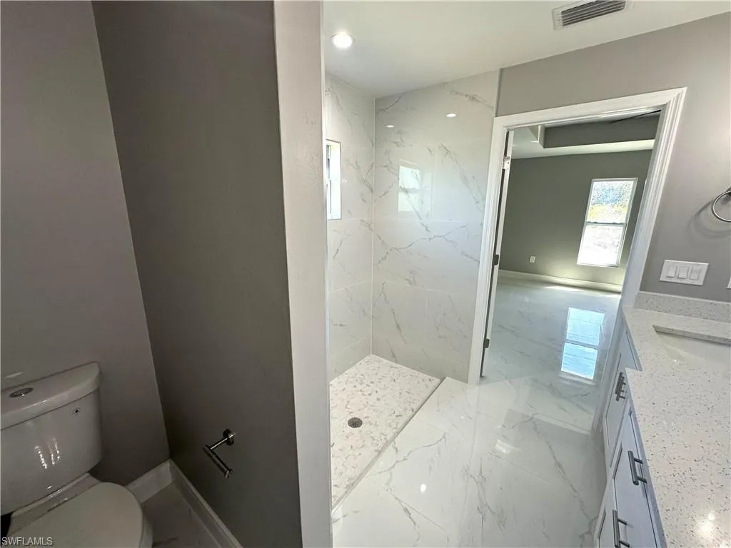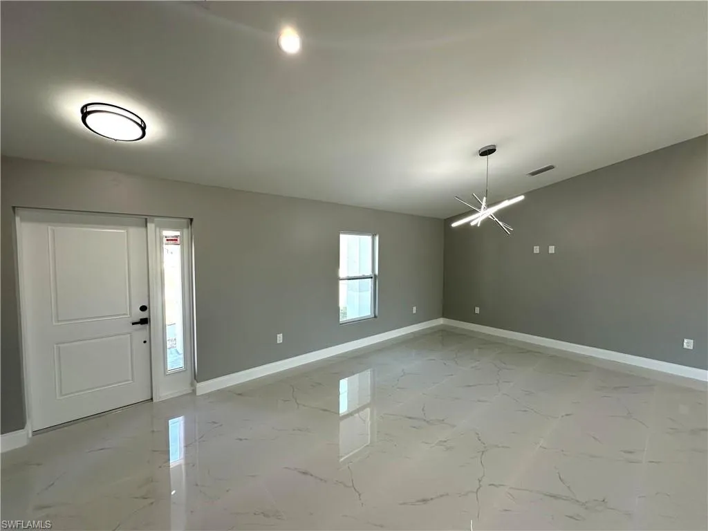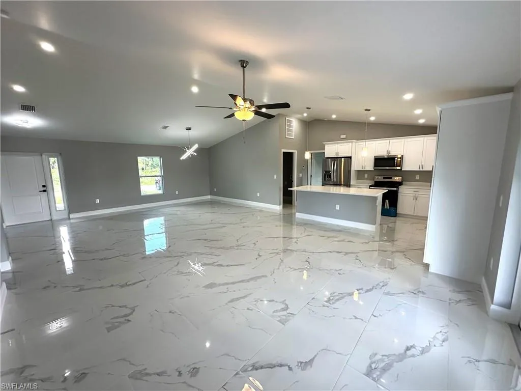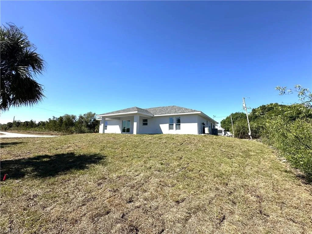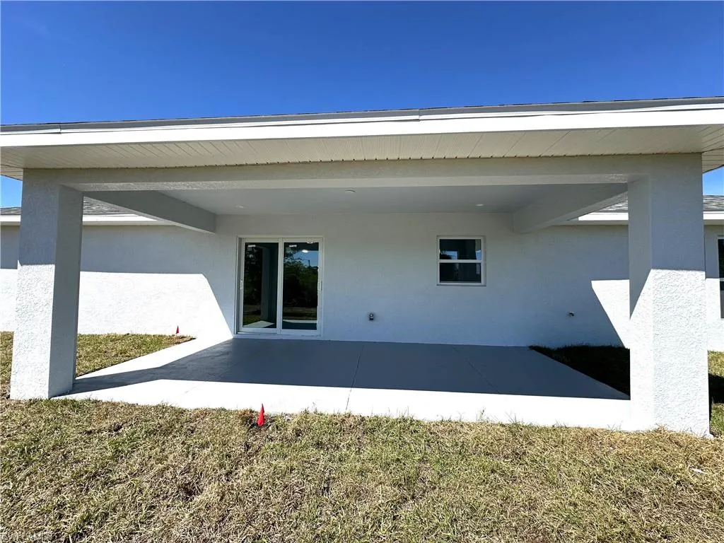 Experience the best of new construction in this striking 3-bedroom, 2-bath home. Built with safety and style in mind, this residence features impact windows and a hurricane-rated garage door. An open and airy kitchen is a chef’s dream, boasting granite counters, a tiled backsplash, and a new suite of stainless steel appliances. Soft-close cabinets and drawers, along with dedicated pantry and island storage, ensure clutter-free living. Porcelain tile flooring spans every room, including the closets, for a seamless, upscale look. Retreat to the master bedroom, which offers a tray ceiling, a spacious walk-in closet, and a dual-sink ensuite bath with a beautifully tiled walk-in shower. The two guest bedrooms are generously sized and share a large, granite-topped bath with a tiled tub and shower combo. Outside, a covered front porch and expansive rear lanai provide perfect outdoor living spaces, all enhanced by a complete sprinkler system for easy maintenance. Some of the pictures are from a previously completed model.