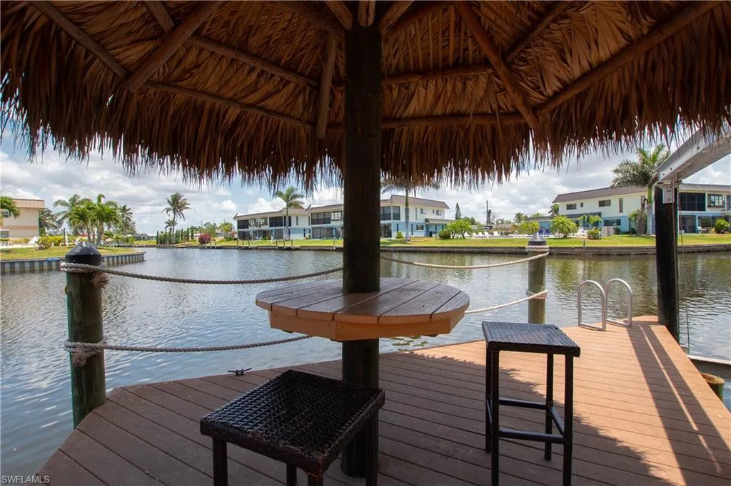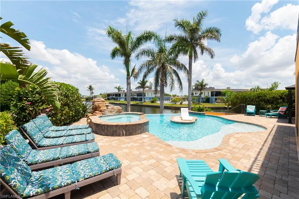 Tucked away at the end of a quiet cul-de-sac, this beautifully maintained gulf access pool home offers the ultimate Florida lifestyle. Featuring a boat dock with tiki hut and newer 13,000 lb boat lift, this home is a short ride to the Bimini Basin and the Gulf of America. Coupled with two distinct living areas, downstairs you will find open-concept layout ideal for entertaining. The well-appointed kitchen includes granite countertops, stainless steel appliances, and an oversized walk in pantry. The upstairs retreat features a spacious primary suite complete with a walk-in shower and jetted soaking tub, and sliders that open up to the balcony. This level also offers a versatile second living room, three additional bedrooms, a full bathroom, and a generously sized storage closet, all enhanced by the peace of mind that comes with impact-resistant windows throughout. Updates include TWO brand new AC units in 2025! Step outside to your private oasis: a screened-in lanai, heated pool, and panoramic canal views — perfect for relaxing evenings or hosting guests. Located in the Yacht Club Area near shopping, dining and entertainment.